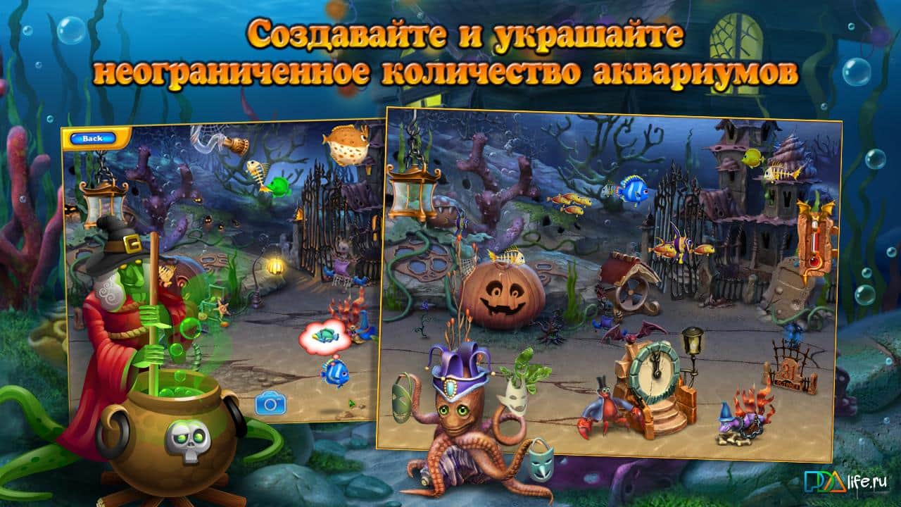 Fishdom Spooky HD - Renkli bir android oyunu, 'üçlü' kategorisinde. Kendi sanal akvaryumunuzu oluşturun, yeni sakinler ve süslemeler keşfederek bulmacaları çözün. Bu oyun versiyonu Cadılar Bayramı temasıyla oluşturulmuştur. Akvaryumunuzda sadece güzel balıklar değil, aynı zamanda onların iskeletleri de yüzüyor olacak.