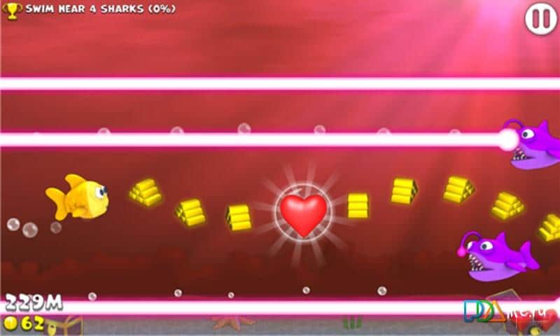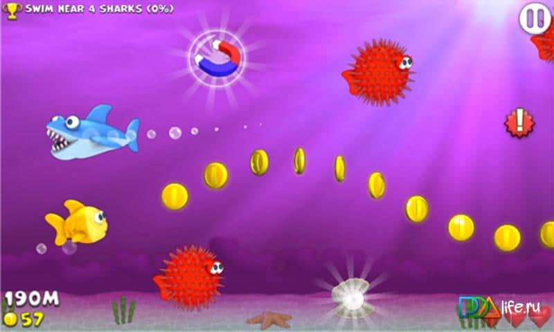 Balık Acele - sizi deniz canlılarının sualtı dünyasına sokacak, Windows Phone için heyecan verici bir oyundur. Kaybolmuş küçük sarı balığın evine sağ salim dönmesine yardım edin. Sizi çeşitli canlılarla dolu dev bir sualtı dünyasının beklediği heyecan verici bir maceraya atılın, bunlar arasında dev beyaz köpekbalığı, tehlikeli elektrikli torpidolar ve keskin dikenli deniz canlıları bulunmaktadır. Tüm engelleri aşın, altın paraları ve bonusları toplayın, ayrıca size ek geliştirmeler kazandıracak çeşitli görevlerde yer alın.