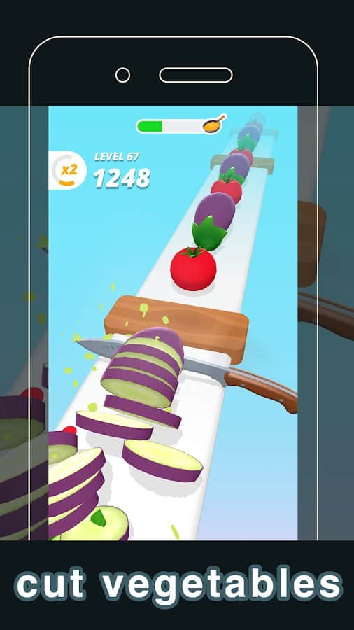 Beş Yıldızlı Dilim – Android'de bir parmakla sebzeleri ve meyveleri kesmek üzere eğlenceli bir tıklayıcı oyunu. Piksel bıçağınızı kontrol altına alın ve sebzeleri kesmek için doğru anda ekrana dokunun, bu arada sayısız engeli aşmaya dikkat edin. Parmaklarınızın çevikliğine ve harika reflekslerinize güvenin ve lezzetli bir çorba pişirmek için mümkün olduğunca çok dilim yapın. Bu oyunu her zaman oynayabilir ve durmaksızın eğlenmenin tadını çıkarabilirsiniz. Keyifli bir müzik eşliğinde dilimleme yapın ve yeni bıçaklar ve kılıçlar keşfedin.