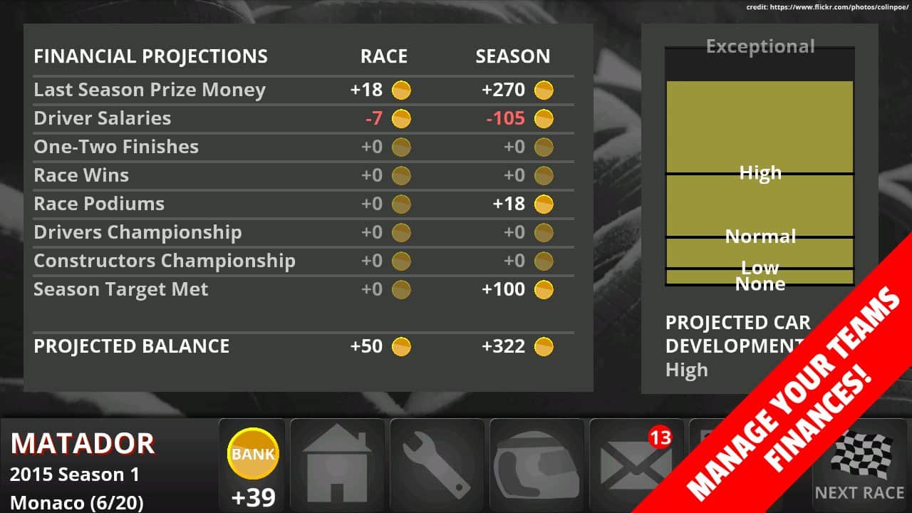 FL Yarış Yönetimi – Android için bir yönetici simülatörü, burada 2015 sezonuna ait bir yarış takımını yöneteceksiniz. Görevleriniz arasında hesapların yönetimi, araçlarınızı güncelleme ve yeni araçların araştırma ve geliştirmesine yatırım yapma bulunacak. Araçlarınızın pistteki hareket sistemini, geçişler ve pit stop stratejileri ile geliştirin. Birkaç sezona katılın ve takımınızdan en iyi sonuçları elde edin. Araçlarınızın beş farklı hava koşulundaki güvenliğini kontrol edin ve sürücülerin en yüksek şansta olduğu döngüyü izleyin, sürücülerin kariyeri sona erdiğinde emekliye ayırın. Bu oyunda ana hedefiniz takımınızı zaferle taçlandırmak ve bu süreçte şöhret ve para kazanmaktır.