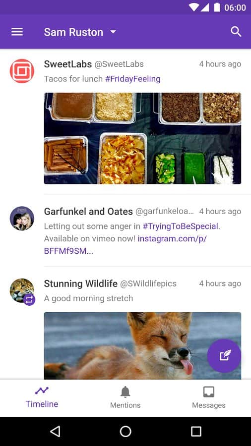 Twitter için Flamingo (Beta) - Sosyal ağ Twitter için güzel ve kullanışlı bir istemci. Burada standart istemcide bulunmayan birçok özellik bulacaksınız. Ayrıca standart özelliklerin yanı sıra, istemcinin görünümünü değiştirebilir, ona farklı renkler ve desenler verebilirsiniz. Tüm işlevselliğine rağmen, bu istemci neredeyse akıllı telefonun kaynaklarını tüketmiyor, bu nedenle onu türünün en iyilerinden biri olarak adlandırmak mümkündür.