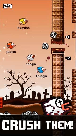 Flapping Crush: Cadılar Bayramı Kuşu – Android için bir zaman öldürücü, burada uçan bir kuş değil, hareket eden bir boru olarak oynayacaksınız. Telefonunuzun ekranına olabildiğince sık basın ve hiçbir kuşun yanınızdan uçmasına izin vermeyin. Kuşlar yanınızdan geçerken boruyu kapatın, onları yok ederek puan kazanacaksınız. Göreviniz, tek bir kuşu bile kaçırmamaktır. Parmaklarınızın becerisini gerçek hayatta test edin ve diğer oyuncularla yarışarak sıralamanızı yükseltin.