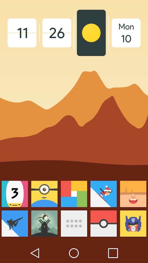 Flatout Minimal IconPack Teması - Masaüstünüzü benzersiz ve güzel bir şeyle süslemek istiyorsanız, sadece her zevke uygun çeşitli ikonlar değil, aynı zamanda onlara uygun arka planlar içeren bu uygulamayı kullanın. Bu uygulama birçok modern launcher ile mükemmel çalışır ve sürekli olarak güncellenir.