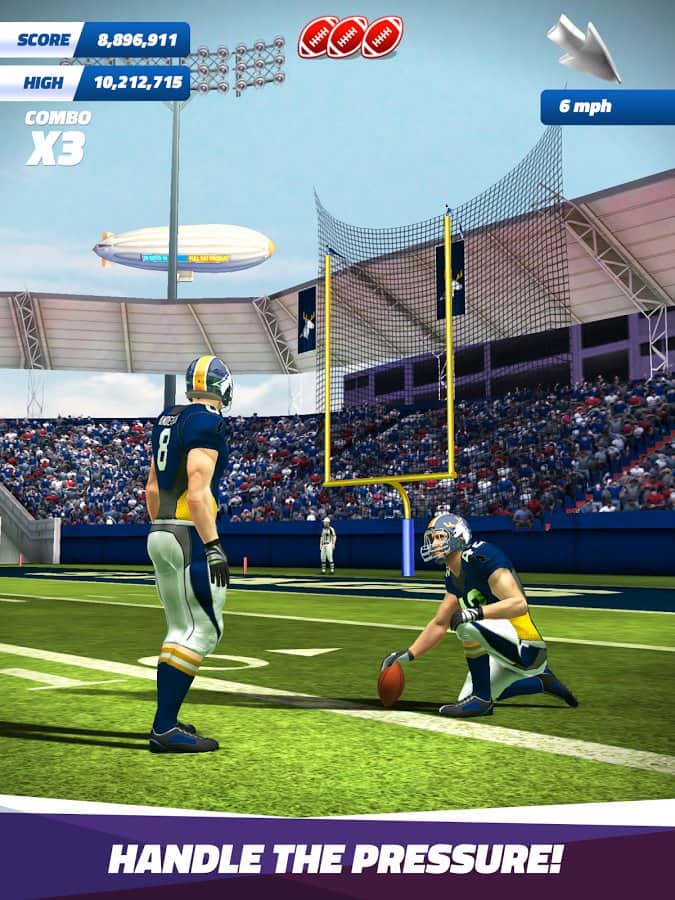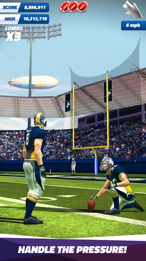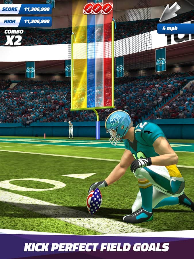 Flick Field Goal 16 – Amerikan futbolu oynayın ve bir efsane olun. Oyun alanına çıkın ve topa kesin vuruşlar yaparak çeşitli görevleri ve misyonları yerine getirin. Topa mümkün olan en güçlü şekilde ayakla vurun ve topu alandaki özel ışıklarla işaretlenmiş hedefe doğru gönderin. Futbolcunuzun yeteneklerini geliştirin, onu eğiterek puan toplayın ve liderlik tablosunda mümkün olduğunca yukarı çıkın. Mükemmel bir sezon geçirerek oyuncu için yeni ekipman ve formalar şeklinde ödüller kazanın. Oyun, harika fiziği, çeşitli oyun modları ve farklı hava koşulları ile sizi memnun edecek.