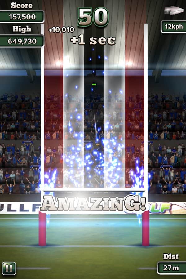 Flick Nations Rugby - en gerçekçi Android için Amerikan futbolu simülatörüdür ve kaleye kritik bir atış yapmanızı sağlar! Öncelikle - antrenmanlar. Onları ihmal etmeyin, gerçek hayatta oyunun ustası olsanız bile veya yeni başlıyor olsanız da, özellikle Amerikan futbolu oynamadıysanız! Elinizi alıştırdıktan sonra, temsil etmek istediğiniz 15 ülkeden birini seçebilirsiniz: İngiltere, İtalya, Galler, Fransa, Avustralya vb. Her yeni oyun seviyesi kendi sürprizlerini getiriyor - birinde belirtilen alanlara topu göndererek maksimum oyun puanı toplamanız gerekiyor, diğerinde ise mevcut tüm alanları yok etmelisiniz, vb. Temel görevimiz - kaleye maksimum doğrulukla isabet etmektir. Kalede, anladığınız gibi, her biri belirli bir puan getiren beş bölge bulunmaktadır. Merkez bölgesi en yüksek puanı getirir! Oyun zorluğu, yan rüzgarlar ortaya çıktığında ve topun uçuş yönünü havada döndürerek ayarlamanız gerektiğinde artmaya başlar. Oyun yüksek çözünürlüklü harika grafikleriyle dikkat çekiyor!