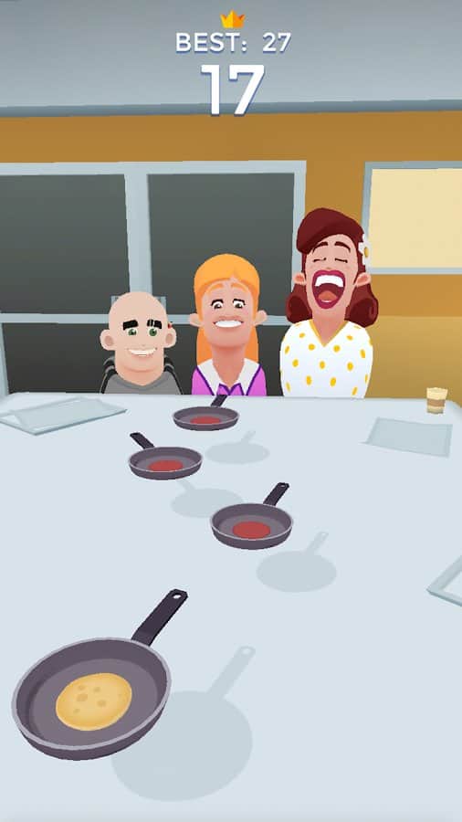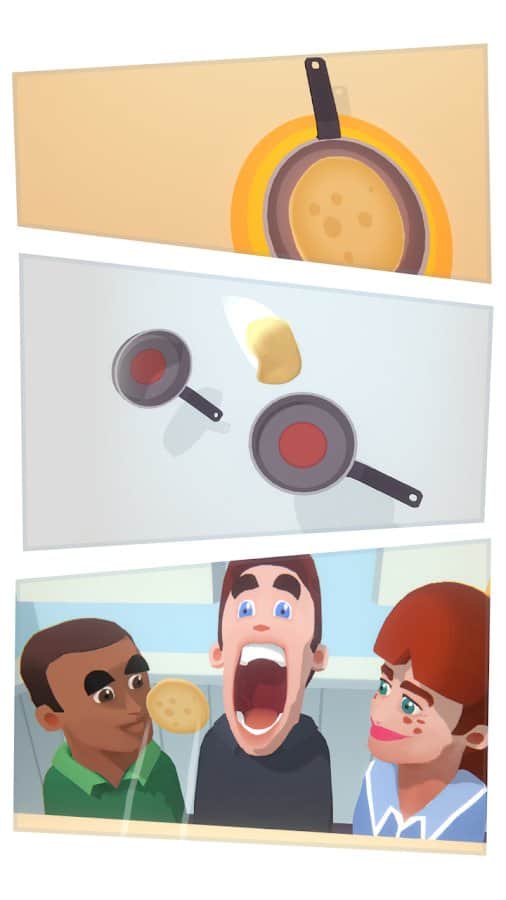 Flippy Pancake – Android için eğlenceli bir oyun, burada krep pişireceksiniz. Bu oyunda, krepleri bir tavadan diğerine hareket ettirerek aç bir müşteriyle doğrudan ağzına atmanız gerekiyor. Parmaklarınızın çevikliğine güvenin ve doğru zamanda telefonunuzun veya tabletinizin ekranına dokunarak krepleri fırlatın. Krepleri tavalar arasında yönlendirin ve hedefi kaçırmamaya çalışın. Yeni krep tariflerini ve karakterleri keşfedin. En iyi sonuçlar için arkadaşlarınızla yarışın ve liderlik tablosunda daha yukarılara çıkın.