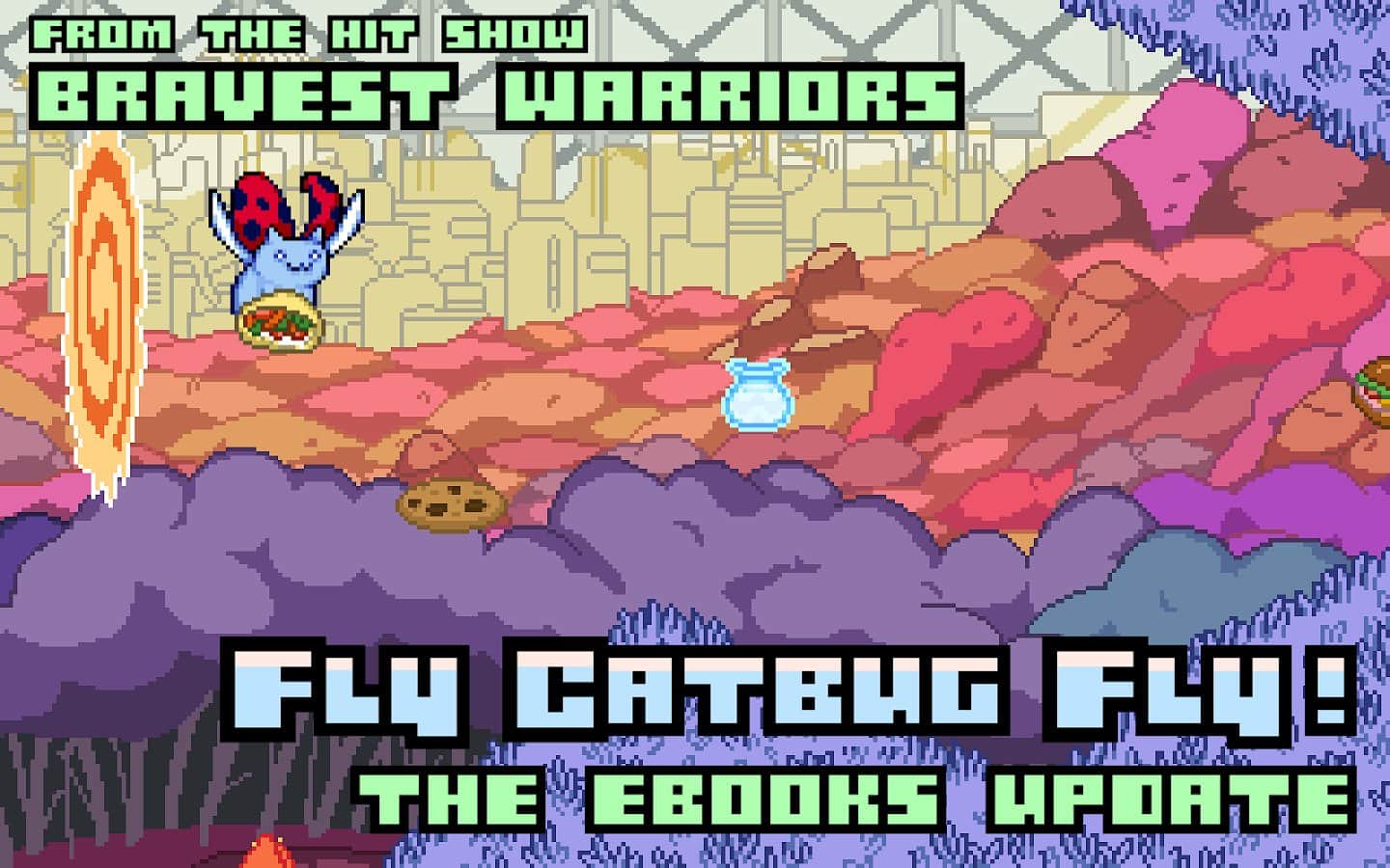 Uç Catbug Uç! - uçan ana karakteri kontrol edeceğiniz ve yemek toplayacağınız bir oyun. 9 farklı lokasyonda uçun, engellerden kaçının ve yiyecek şeklinde tatlı ganimetler toplayın. Bonuslar kazanın ve kahramanınızı çeşitli kostümler ve kıyafetlerle giydirin, ayrıca yeni dünyaların kilidini açın. Sevimli bir kahraman ve tek dokunuşla kolay kontrol ile eğlenceli bir oyun.