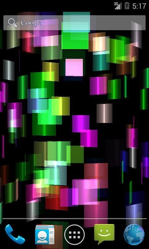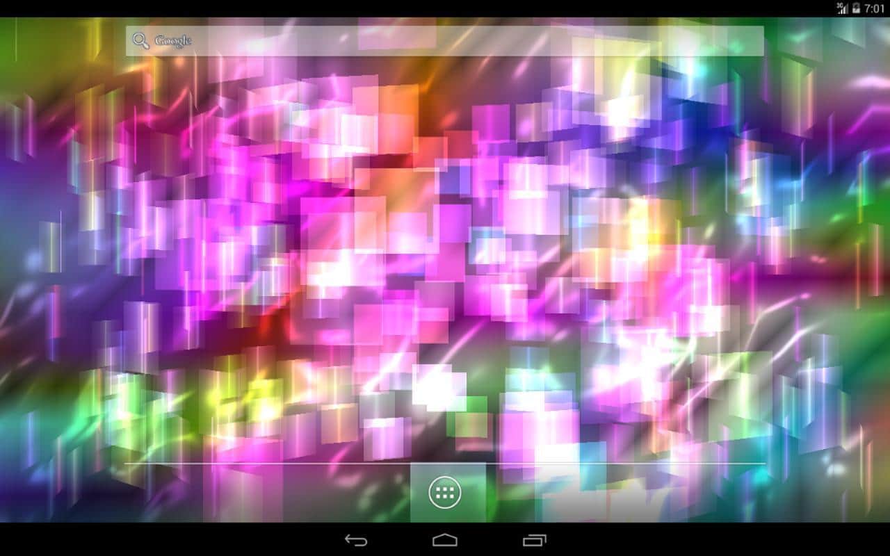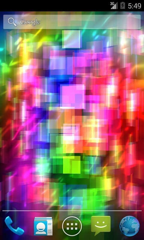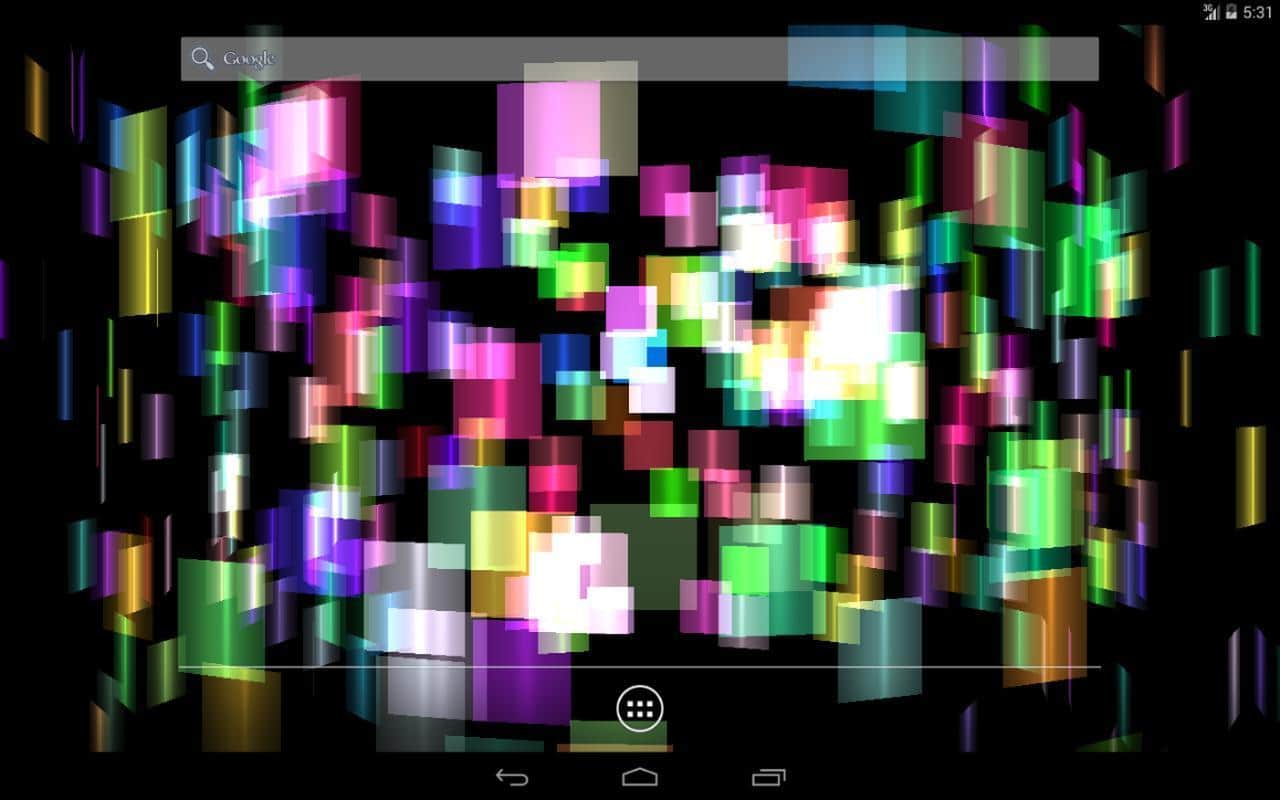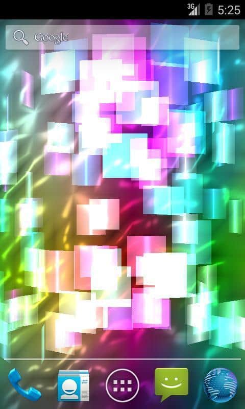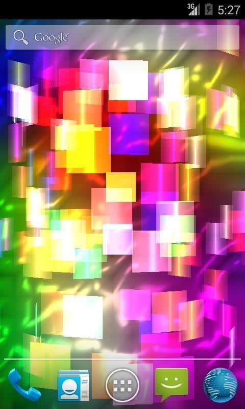 Fly Color Pro Canlı Duvar Kağıdı - parlak renkli ve parlayan nesnelerden oluşan bir tür üç boyutlu mozaik olan soyut canlı duvar kağıtlarıdır. Tüm duvar kağıdı unsurları renk tonlarında değişir ve farklı düzlemlerde döner, böylece dönen ve değişen üç boyutlu bir mozaik oluşturur. Ekrana dokunulduğunda resim tepki verir ve renklerle daha yoğun bir şekilde oynamaya ve dönmeye başlar.
