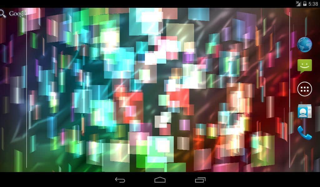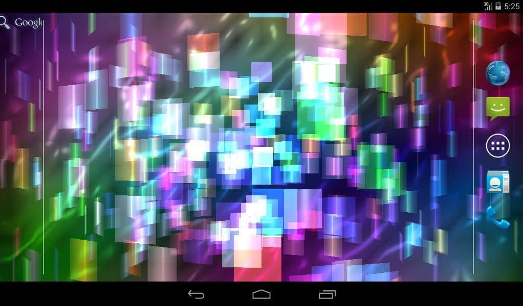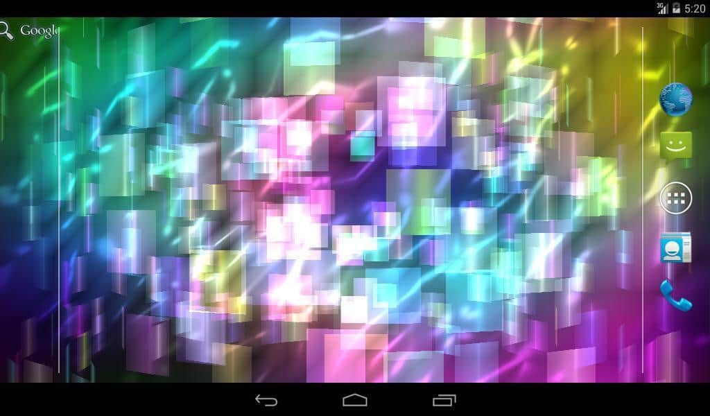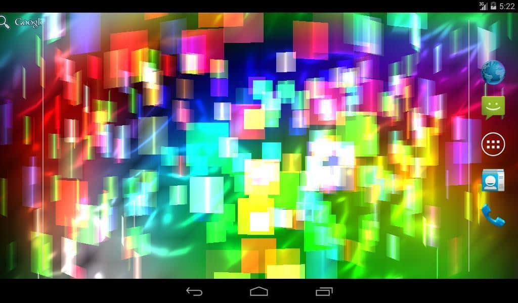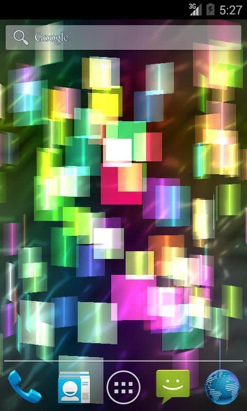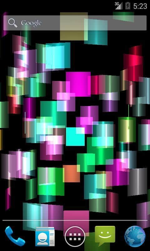 Fly Color Pro Canlı Duvar Kağıdı - parlak renkli ve parlayan nesnelerden oluşan bir tür üç boyutlu mozaik olan soyut canlı duvar kağıtlarıdır. Tüm duvar kağıdı unsurları renk tonlarında değişir ve farklı düzlemlerde döner, böylece dönen ve değişen üç boyutlu bir mozaik oluşturur. Ekrana dokunulduğunda resim tepki verir ve renklerle daha yoğun bir şekilde oynamaya ve dönmeye başlar.