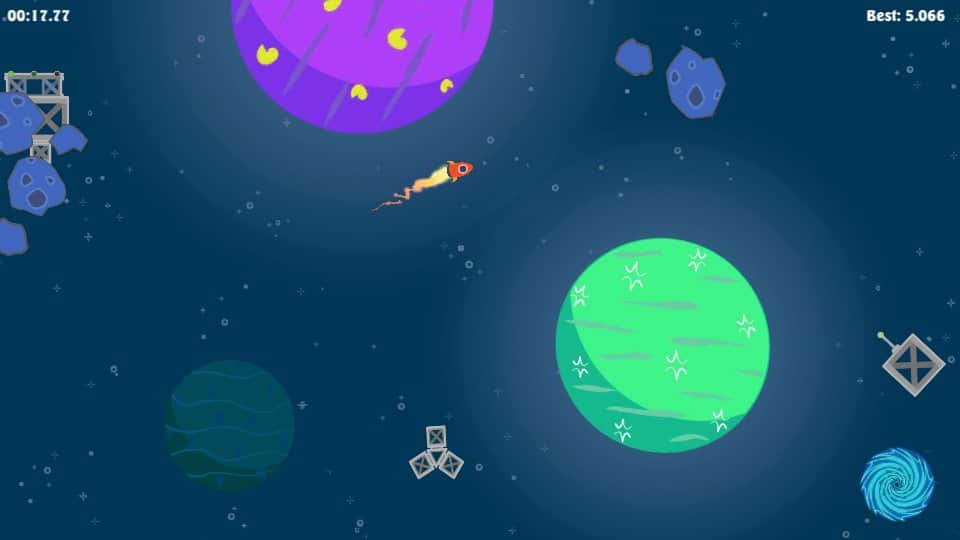 Uçur! – uzay gemisini yönetin ve yolda karşılaşacağınız tüm engelleri aşın. Açık uzayda veya bir gezegenin yüzeyinin üzerinde uçun ve asteroitler, uydular, balonlar ve diğer nesnelerle çarpışmalardan kaçının. Telefon ekranına doğru zamanda dokunun ve roket motorunu çalıştırarak fizik kurallarını göz önünde bulundurun. Çalışan motor, hareket yönünüzü değiştirebilir ve böylece bir engelden uzaklaşmanızı ya da ona yaklaşmanızı sağlar. Bir sonraki seviyeye götüren porta ulaşmaya çalışın.