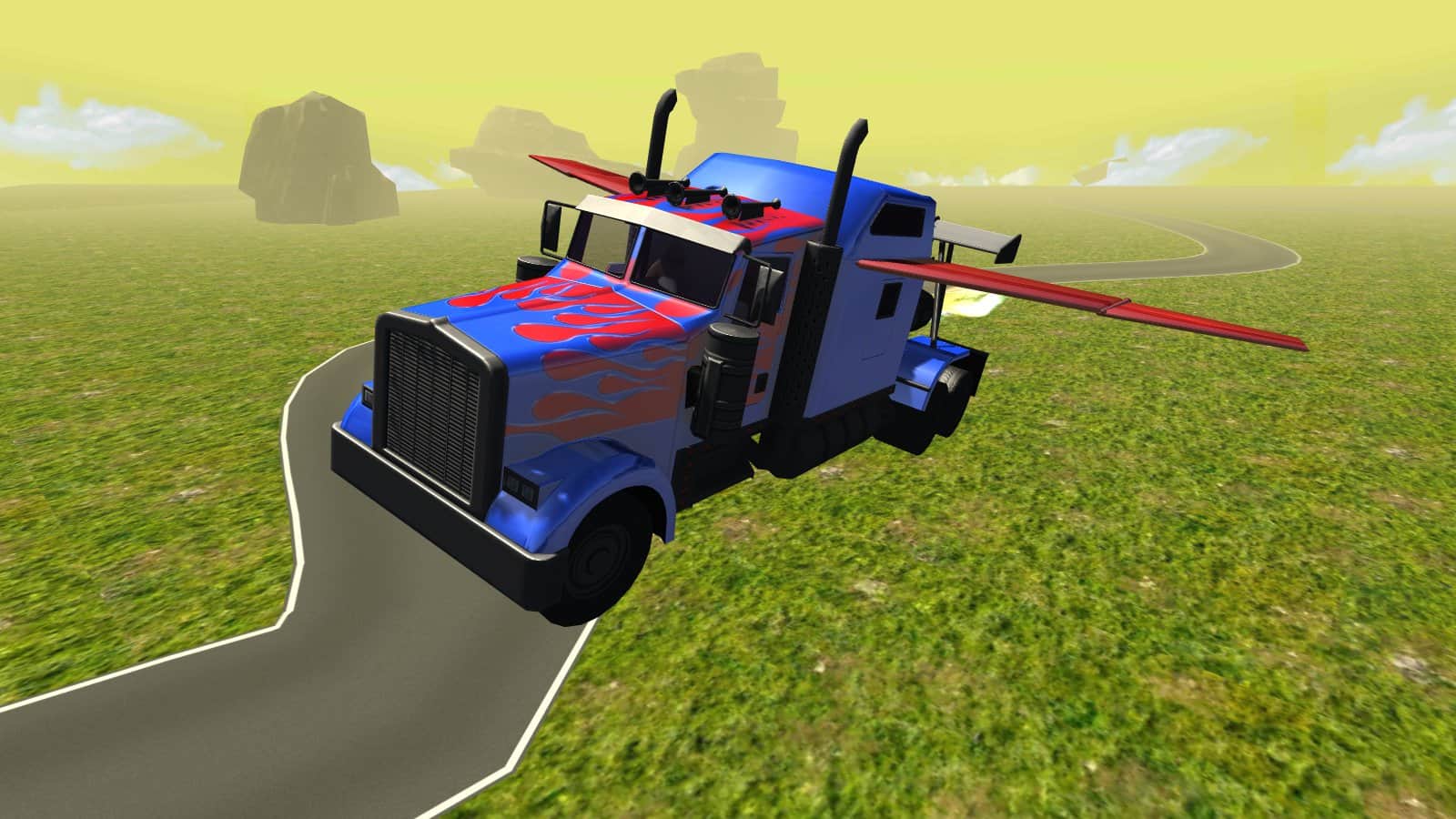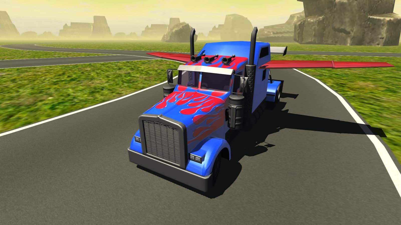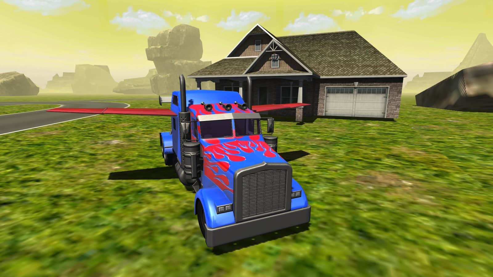 Uçan Araba: Dönüşen Kamyon – Android için bir simülatördür, burada büyük bir kamyonu kontrol altına alacaksınız. Engebeli arazilerde sürün ve kamyonunuzu maksimum hızlara çıkarın, yolda ve dağların üzerinde süzülen bir şekilde uçun. Son derece dikkatli ve özenli olun ve dağlarla ve diğer nesnelerle çarpışmalara izin vermeyin. Bu oyunda kamyon sürme becerilerinizi sergileyebileceğiniz eşsiz bir deneyim yaşayacaksınız, ayrıca bir uzman haline gelecek ve aracı bir uçak gibi kullanacaksınız. Hızlanmak ve aracın kanatlarını açmak için özel butonlara basın. Oyun sizi gerçekçi fiziği ve dinamik aracıyla memnun edecek.