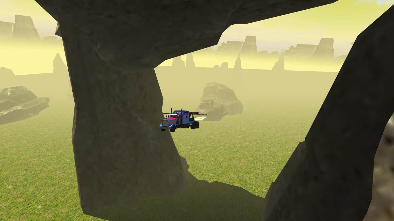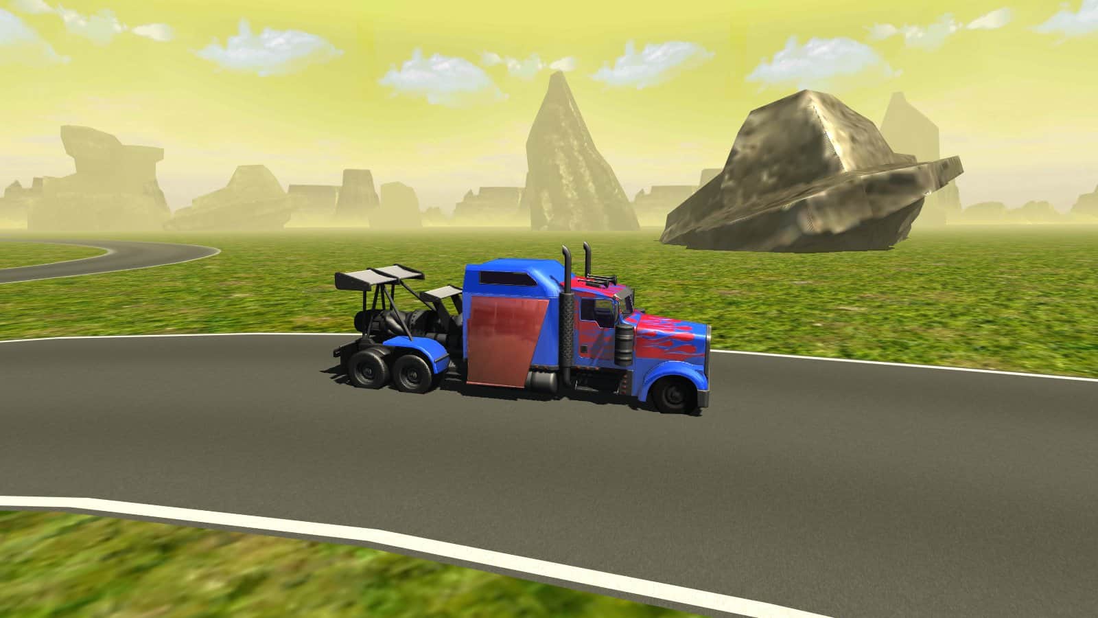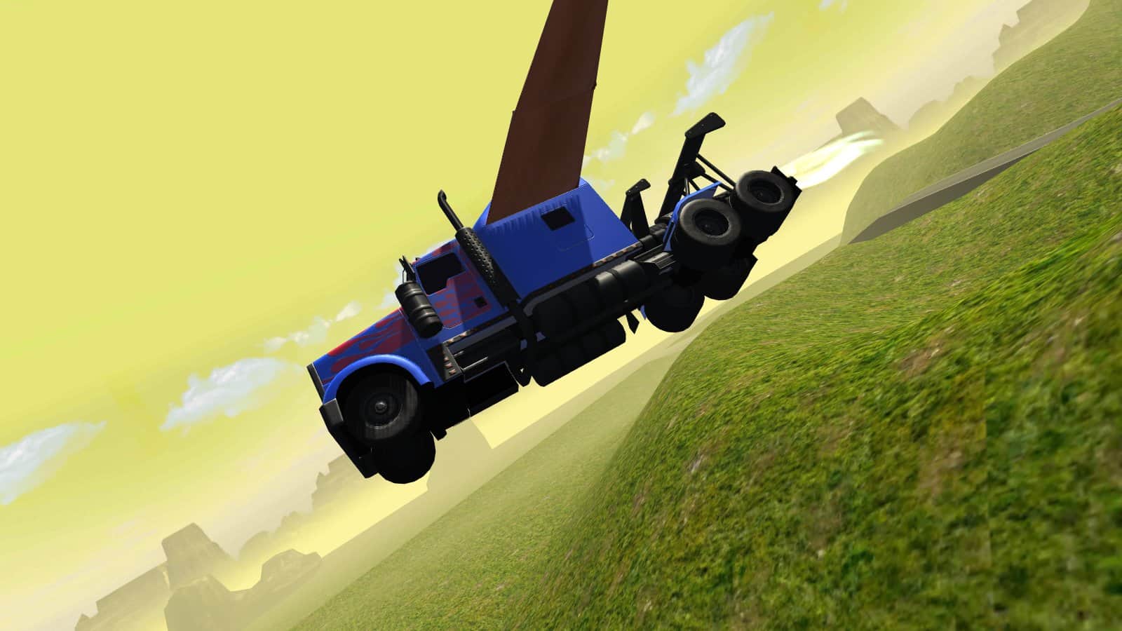 Uçan Araba: Dönüşen Kamyon – Android için bir simülatördür, burada büyük bir kamyonu kontrol altına alacaksınız. Engebeli arazilerde sürün ve kamyonunuzu maksimum hızlara çıkarın, yolda ve dağların üzerinde süzülen bir şekilde uçun. Son derece dikkatli ve özenli olun ve dağlarla ve diğer nesnelerle çarpışmalara izin vermeyin. Bu oyunda kamyon sürme becerilerinizi sergileyebileceğiniz eşsiz bir deneyim yaşayacaksınız, ayrıca bir uzman haline gelecek ve aracı bir uçak gibi kullanacaksınız. Hızlanmak ve aracın kanatlarını açmak için özel butonlara basın. Oyun sizi gerçekçi fiziği ve dinamik aracıyla memnun edecek.