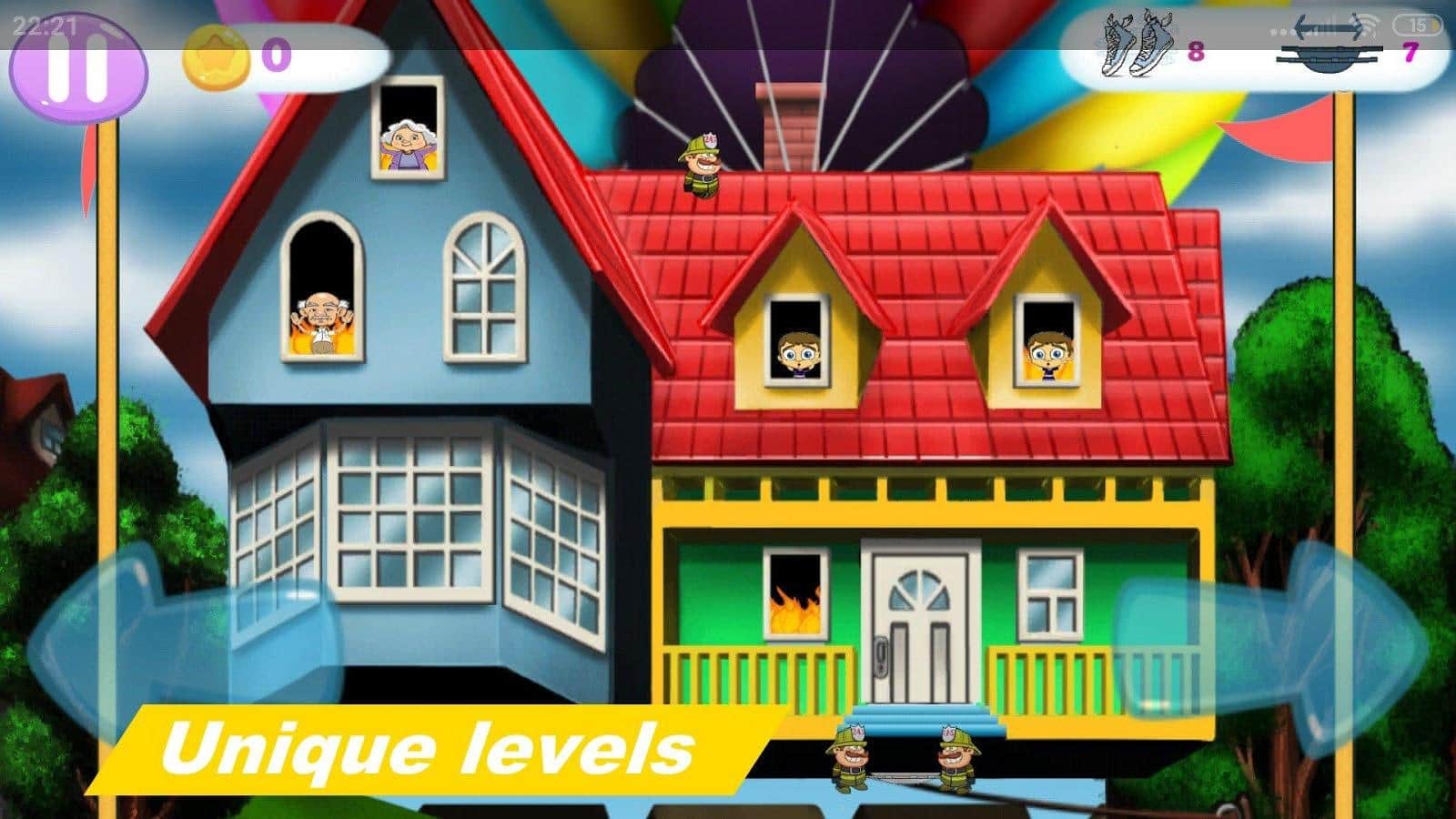 Uçan itfaiyeciler – Android için eğlenceli bir oyun, burada bir itfaiyeciyi kontrol edeceksiniz ve onun alevler içinde kalan binalardan insanları kurtarması gerekecek. Bu oyundaki ana göreviniz itfaiyeciyi uçuşa göndermek ve bu şekilde yangını söndürmek ve insanların binalardan çıkmalarına yardımcı olmaktır. Birbirinden renkli birçok mekanda hareket edin, her biri size farklı hava koşulları ve engeller sunacak. Ekrandaki iki ok ile itfaiyecinin uçuşunu kontrol edin ve zorlu seviyeleri geçin. Bu oyun hem yetişkinler hem de çocuklar için mükemmel bir seçimdir, herkes kendine uygun bir şey bulacaktır. Bu oyunu oynayın ve fizik yasalarını göz önünde bulundurun.