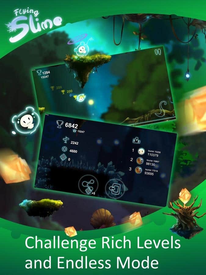 Uçan Slime – Android için bir arcade oyunu, burada eğlenceli bir kahramanla birlikte büyülü dünyalarda yolculuk edeceksiniz. Bu oyunda kahramanımızın benzersiz yetenekleri var, çeşitli nesnelere tutunarak hareket edebilir. Kahramanı ileriye götürün ve ağaç dallarına, tavana ve diğer nesnelere tutunun, kahramanın tuzağa düşüp yere düşmesine izin vermeyin. Yol boyunca, kahramanınızın gezegenini makineler ordusundan kurtarmak için ihtiyaç duyacağı taşları ve eşyaları toplamayı unutmayın. Size benzersizliği ile keyif verecek yeni karakterlerin kilidini açın ve tüm bonusları toplayın.