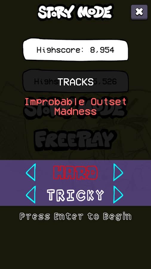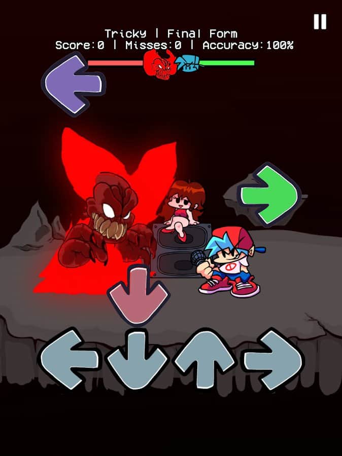 Fnf Tricky: korkutucu müzik oyunu - Sevdiğiniz Cuma gecesi oyununuzu ve korkulardan gelen tüyler ürpertici canavarlarla müzik savaşını birleştirerek müzikte gerçek bir tat alma duygusu için harika savaşlar yapın! İşaretli okların içine tam olarak nişan alarak mümkün olduğunca çok puan toplayın, hızlıca geçip giderken. 6 benzersiz modla birlikte tüm 7 haftayı geçin ve sevdiğiniz şarkılarla dans ederken eğlenin. Seviyelerin zorluklarını ayarlayın, layık rakiplerle savaşın, kız arkadaşınızı etkileyin ve kariyer yolunda birçok korkutucu varlıkla karşılaşın.