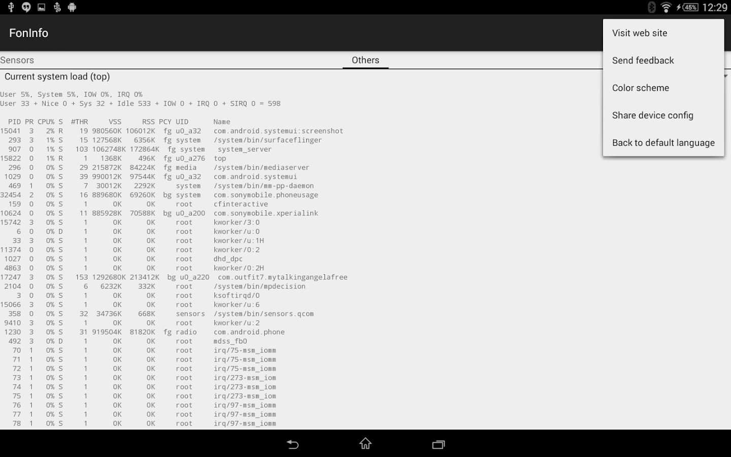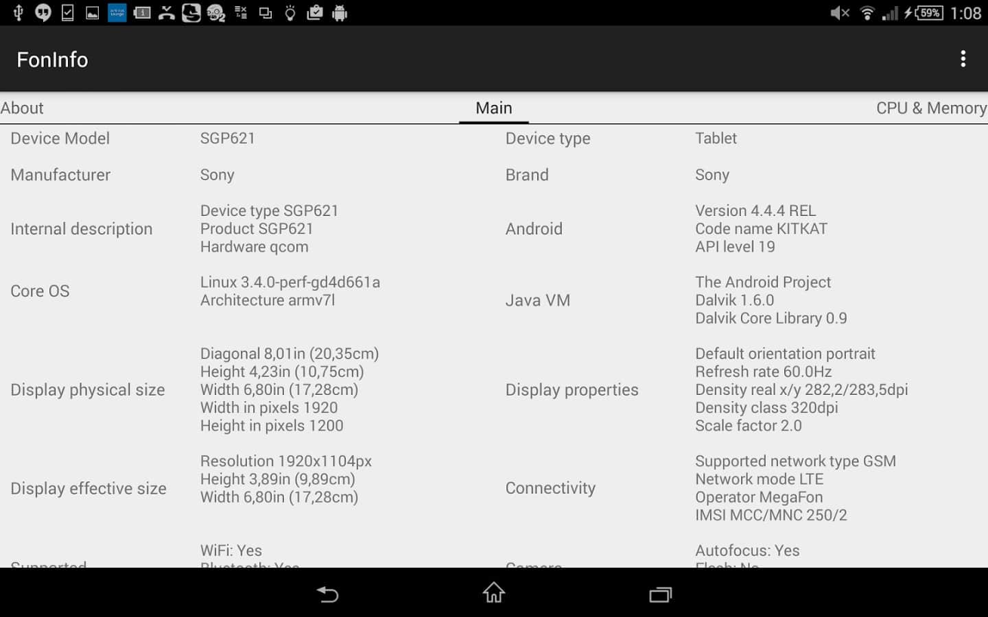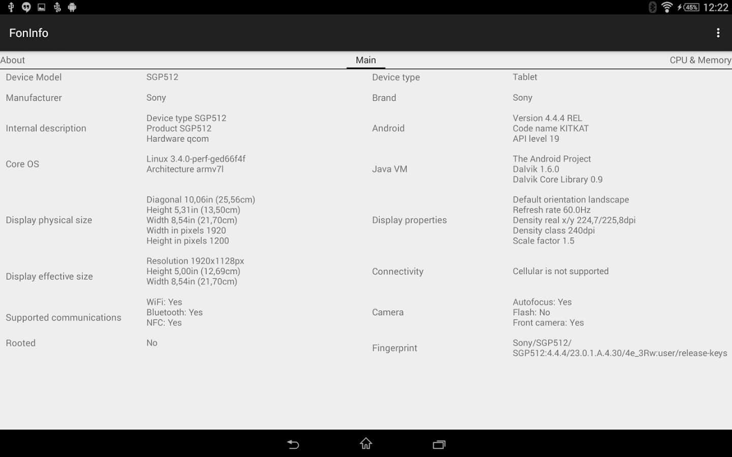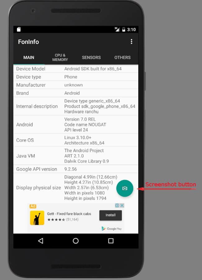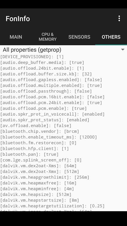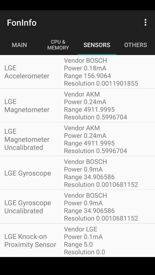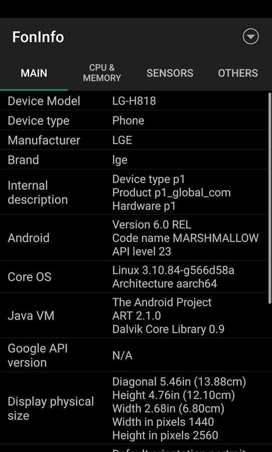 - İşlemci, grafik alt sistemi, RAM ve flash bellek, mevcut tüm sensörler, ekran çözünürlüğü vb. hakkında bilgi görüntüleme.