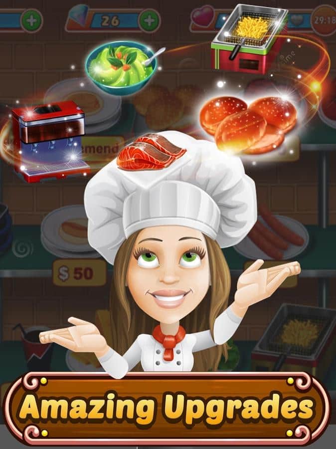 Yemek Avlusu Ateşi: Hamburger 3 – Android için bir oyun, burada kendi mutfağınızda lezzetli hamburgerler hazırlayacaksınız. Bu oyunda, yoğun saatlerde birçok müşteriyi beslemek zorunda olan bir şefin rolünü üstleneceksiniz. Tüm tariflere tam olarak uyun ve işinizi mümkün olan en hızlı şekilde yapın, böylece müşterilerinizi bekletmeden harika ödüller kazanabilirsiniz. Hamburgerlerinizi hazırlamak için sadece taze malzemeler kullanın. Harika kârlar elde edin ve mutfağınızı yeni ekipmanlar alarak genişletin. Yeni tarifler keşfedin ve bunları pişirin. İki restoranda dolaşın ve oyunun 70'den fazla seviyesini geçin.