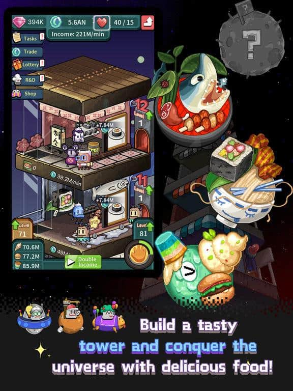 Yemekçi Kulesi: Tembel Dükkan Tycoon – kendi lezzetli kafenizi yaratacağınız eğlenceli bir oyun. Oyunda kendi ürünlerinizi yaratacak ve bunları dükkanlarda satarak kar ve başarı elde edeceksiniz. Ana hedefiniz lezzetli yiyecekler yaratmak ve bunlarla dünyayı fethetmektir. Size bu zorlu görevde yardımcı olacak bir yönetici ekibi kiralayın. Her ürün türü, mutfak becerilerinize meydan okuyacak belirli bir araştırma ve geliştirme sistemini gerektirecektir. Lezzet kafenizi genişletin ve her zaman yeni lezzetli yemeklerin tadına bakın.