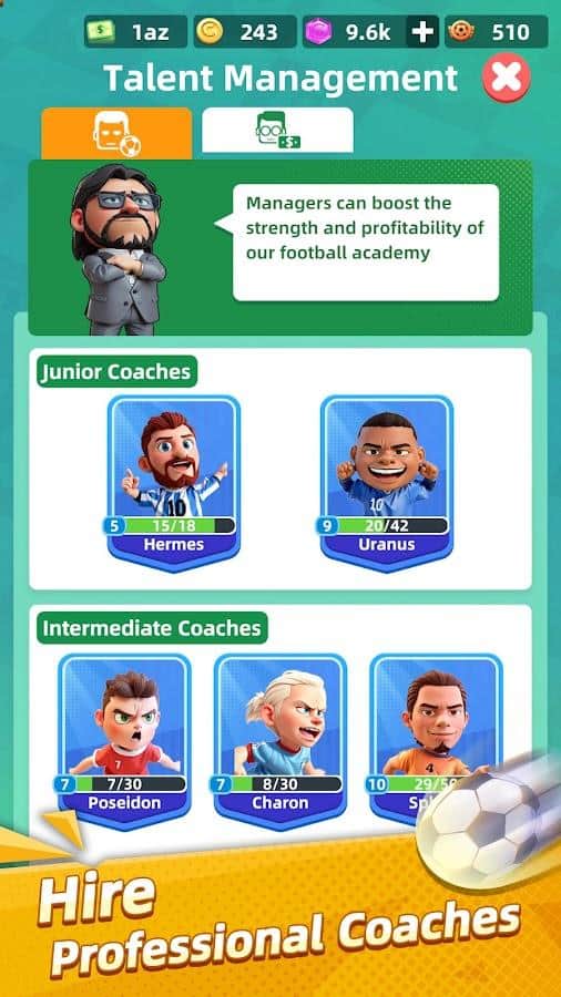 Futbol İmparatorluğu - Rüya Başlıyor ile futbolun heyecan verici dünyasına kapıları açın — gençlerin dünyanın en popüler oyununu öğrenebileceği, tutkusunu profesyonel başarıya dönüştürebileceği bir yer. Oyun sadece bir antrenman yeri değil — milyonları ilham verecek ve spor tarihine iz bırakacak yeni nesil futbolcuların beşiğidir. Sizlerin özeni ve stratejik yönetimi ile her genç yetenek potansiyelini açığa çıkarabilir ve futbol hayalini gerçeğe dönüştürebilir. Direktör olarak görevleriniz şunlardır: