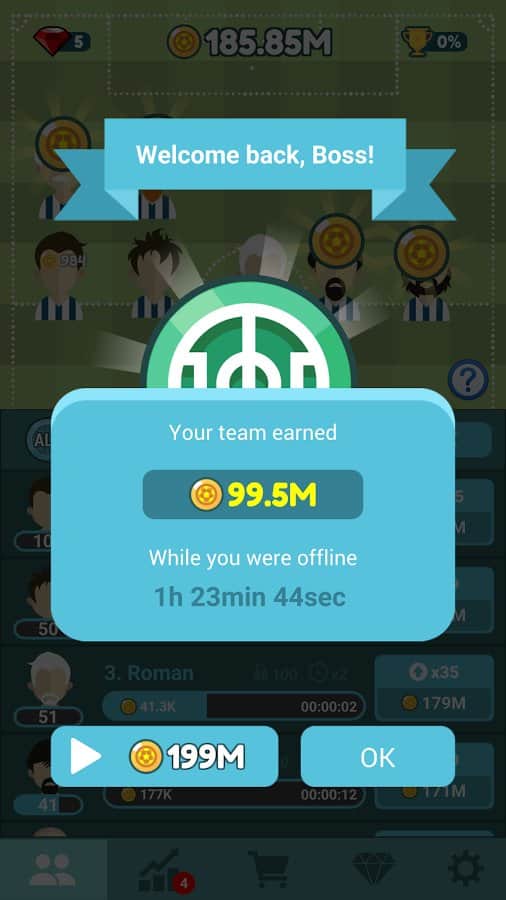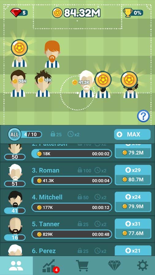 Futbol Menajeri Tycoon – Android için bir futbol takımı menajer simülatörüdür. Bu oyunda az tanınan bir futbol takımını kontrol altına alacak ve onu şöhrete ulaştıracaksınız. Takımı yönetin ve çeşitli turnuvalara katılın, değerli ödüller kazanarak gelişin. Para kazanın ve takımınızı güçlendirmek için daha deneyimli yeni oyuncular satın alın. Takımınızı başarıya ulaştırın ve bu oyunda en iyi menajer olun. Yeni stadyumlar inşa edin, en iyi antrenörleri işe alın ve takımınızı eğitin. Takımınızın ilerlemesini sürekli takip edin ve dünya turnuvalarına ve maçlara katılın.