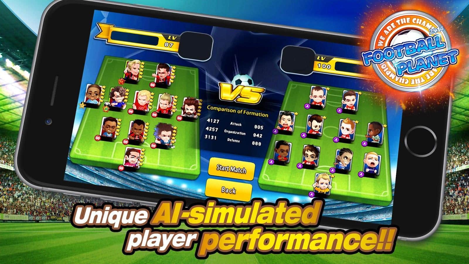 Futbol Gezegeni – Android için bir spor oyunu, burada futbol kulübünüzü kontrol altına alacak ve onu dünya şampiyonasında zafer kazandıracaksınız. Kariyerinize başlayın, farklı şampiyonalara ve turnuvalara katılarak takımları birer birer yenin. Futbolcularla kartlar alıp satarak yenilmez bir takım oluşturun ve en iyi sonuçları elde edin. Her futbolcunun kendine özgü yetenekleri ve hazırlık seviyeleri vardır. Futbolcularınızı sahaya sürün ve onların nasıl oynadığını, size şöhret ve para kazandırdığını izleyin. Antrenman ve maç stratejinizi geliştirin, şampiyonluklar kazanarak takımınızın sıralamasını yükseltin.
