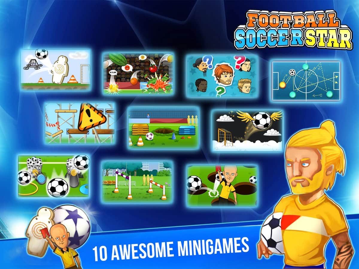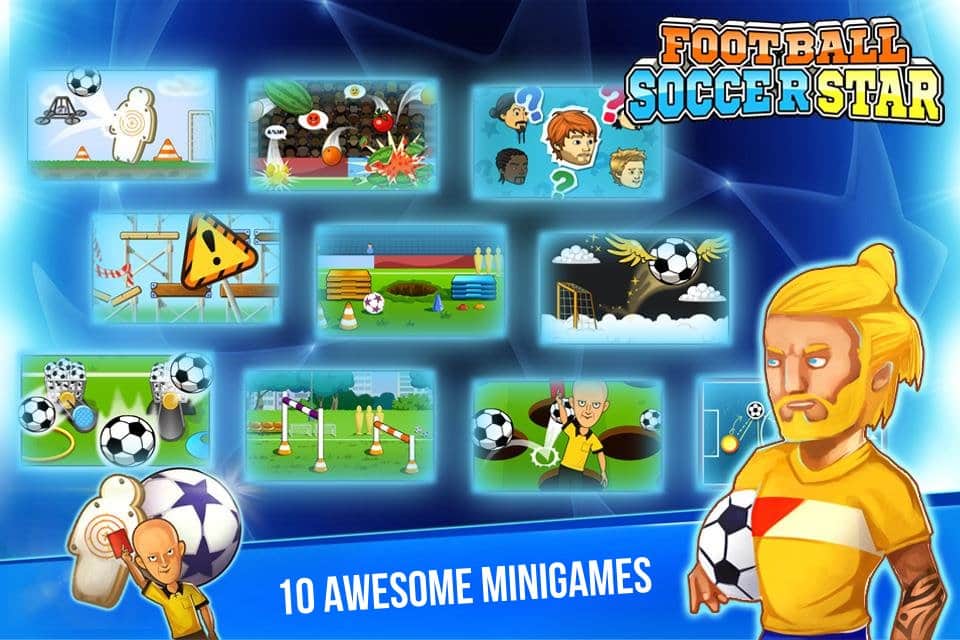 Futbol Futbol Yıldızı! – Android için bir spor oyunu, burada futbolcunuzun isabetini çeşitli numaralar yaparak test edeceksiniz. Kendinize bir futbolcu seçin, ona forma seçin ve görünümünü değiştirin. Bu oyunda sizi 10 eğlenceli mini oyun bekliyor, bunlar gerçekten isabetinizi, gücünüzü ve yeteneğinizi test edecek. Tüm engelleri aşarak kaleye doğru kesin vuruşlar yapın ve bunun için para kazanın. Engellerin üzerinden atlayın ve asla tökezlemeyin. Kazandığınız paralarla futbolcunuzun görünümünü tamamen değiştirebilir, ona bıyık ve sakal ekleyebilirsiniz. 30'dan fazla başarı, 12 kupa kazanmayı ve en iyi futbolcu olarak şöhret kazanmayı deneyin.