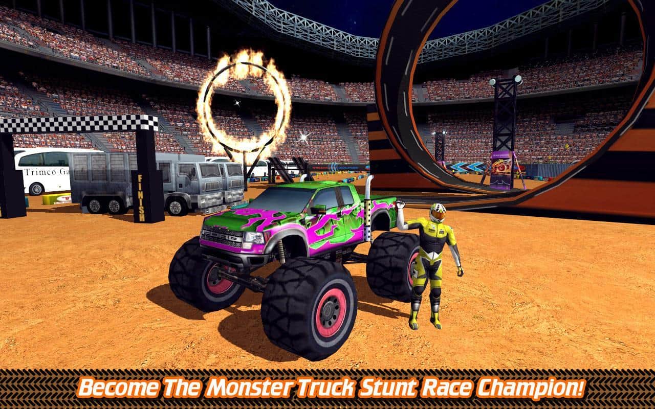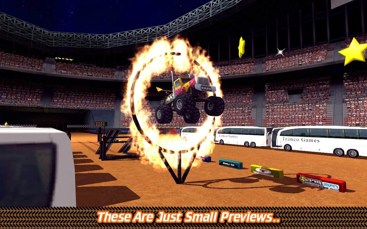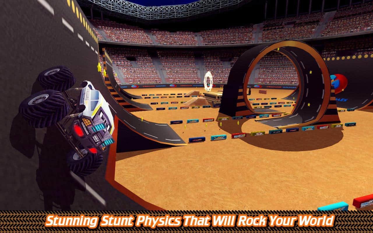 Futbol Stadyumu Kamyon Savaşı – muhteşem fizik motoruna sahip bir oyun, burada dev bir kamyonu kontrol edeceksiniz. Bu oyunda dev bir futbol sahasında sürüş yapacak ve yolunuzdaki tüm engelleri aşacaksınız. Okul otobüslerinin yan yana durduğu yerlerden geçerken, rampaları kullanarak ve yanıcı halkalardan ve loop'lardan geçerek inanılmaz numaralar yapın. Yolda tüm yıldızları ve bonusları toplayın ve her yarıştan sonra kamyonunuzu geliştirin. Engellere çarparak kamyonunuzu parçalamamaya çalışın; eğer böyle bir şey olursa, kazandığınız paralarla yeni bir kamyon alın. Oyun, sizi rahat kontrol, 40'tan fazla seviye ve birçok araçla mutlu edecektir.