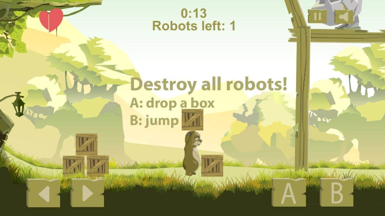 Orman Zorbası – heyecan verici bir macera platform oyunu, bulmaca unsurlarıyla. Bu oyunda, ormanını koruyacak bir ayı olarak oynayacaksınız. Doğal ormanınıza, içindeki tüm ağaçları kesmek için robotlar geldi, onlara bunu yaptırmayın. Seviyedeki tüm robotları kutularla fırlatarak yok edin, ancak her adımınızı dikkatlice düşünün, aksi takdirde tüm robotlar için yeterli kutu kalmayabilir. Zıplayın, koşun ve tüm engelleri aşarak ihtiyacınız olan kutuları toplayın. Oyun, sizi hoş grafikler ve her birinde çeşitli bulmacalar içeren ilginç seviyelerle memnun edecek.