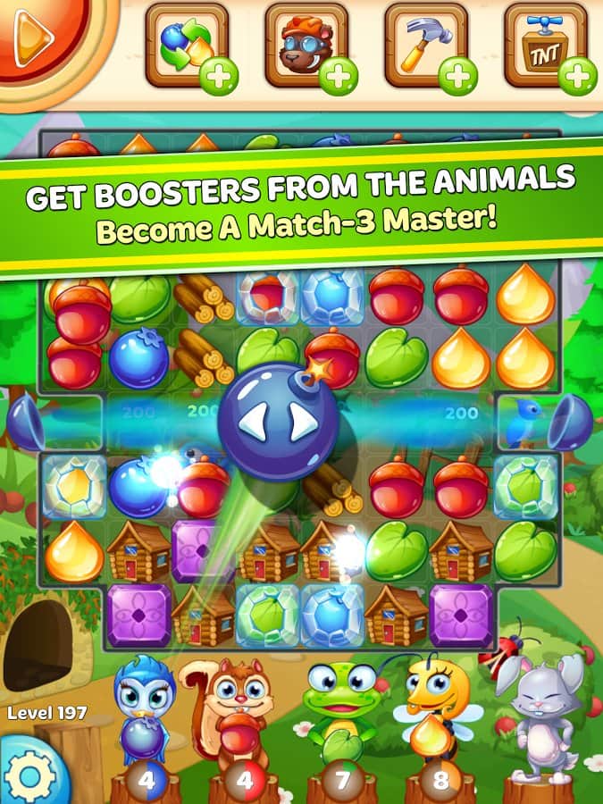 Orman Kurtarma – kötü kunduzlara karşı koymanız gereken ilginç bir bulmaca oyunudur. Tüm kunduzlar birleşti ve farklı hayvanların yaşadığı güzel ormanı kesmeye karar verdiler, sizin görev yours bunu engellemek. Üç veya daha fazla aynı nesneyi sıraya dizin ve tüm kunduzlara karşı koyun, onların planlarını gerçekleştirmelerine izin vermeyin. Ormanı savunmak için tüm mantıksal ve zihinsel yeteneklerinizi kullanın, böylece hayvanlar yaşamaya devam edebilsin. Ormanda yaşayan her hayvanın kendine özgü yetenekleri vardır, hepsini kullanın ve düşmanların ormanın derinliklerine ilerlemesine izin vermeyin.