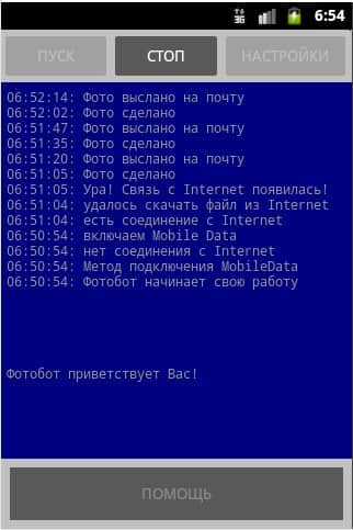 Fotobot - Evde yokken neler olduğunu öğrenmek ister misiniz? Bu çok basit, bu uygulama size yardımcı olacak. Sadece başlatıyorsunuz ve belirli bir zaman aralığında fotoğraf çekip size gönderiyor. Detaylı ayarlar, aralığı ve fotoğrafların gönderileceği adresi belirlemenize yardımcı olacak. Ayrıca, kullanıcıların yazarın adresleri çaldığını şikayet etmemesi için, yalnızca yabancı bir e-posta adresi kaydetmeniz ve ayarlara girmeniz gerekiyor, ardından fotoğrafların gönderileceği kendi adresinizi belirtin. Her şey çok basit ve anlaşılır, ayrıca hiç kimse akıllı telefonunuzun sürekli fotoğraf çektiğini fark etmeyecek. Tabii ki ayarlarda flaşı açmadığınız sürece.