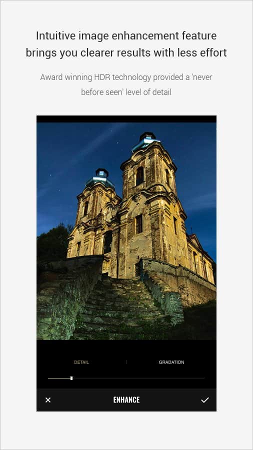Özellikle 1-Tap Enhance fonksiyonu ilginçtir; basit bir dille, otomatik düzeltme gibidir: özel bir algoritma sayesinde, kötü çekimleri kelimenin tam anlamıyla bir tıklama ile iyileştirmeyi mümkün kılar.