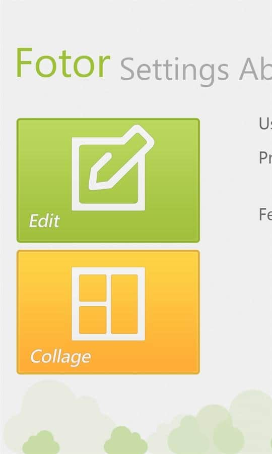 Fotor - Windows Phone için bir uygulama olup, fotoğrafları düzenlemek için birçok popüler özelliğin mükemmel bir kombinasyonunu sunmaktadır. Bu, iyi özel efektler, fotoğraf kesme ve döndürme, çerçeveler ve daha fazlasını içerir. Uygulama ayrıca harika kolajlar yapmanıza olanak tanıyan bir kolaj özelliği de içerir.