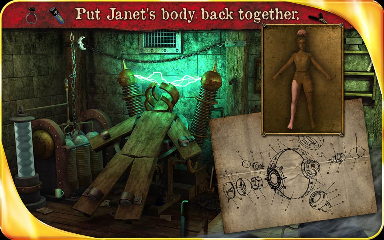 Frankenstein: Kesilmiş Gelin HD - Bu android oyununda, nesne bulma üzerine inanılmaz bir hikaye çizgisi ile ilerleyeceksiniz. Oyun kahramanı Brad, yakın zamanda kaybolan eşi Janet'i aramaktadır; araştırmalarının izleri onu Frankenstein'a ait gizemli bir malikaneye götürüyor! Üzerinde korkunç bir deney yaptı ve bedenini birkaç parçaya ayırdı. Tüm parçaları bulup Janet'i geri getirmek için bir makine oluşturmalısınız.