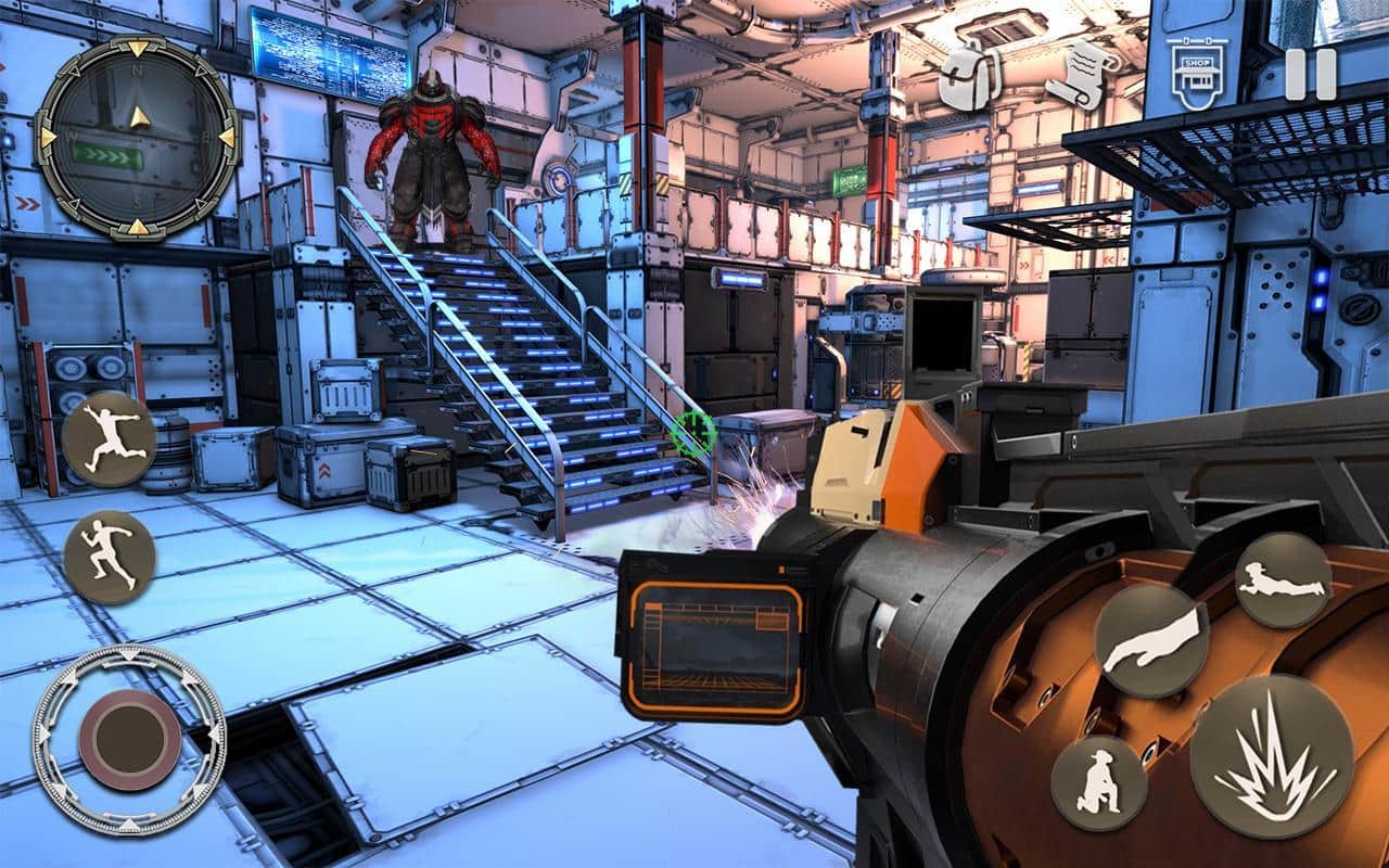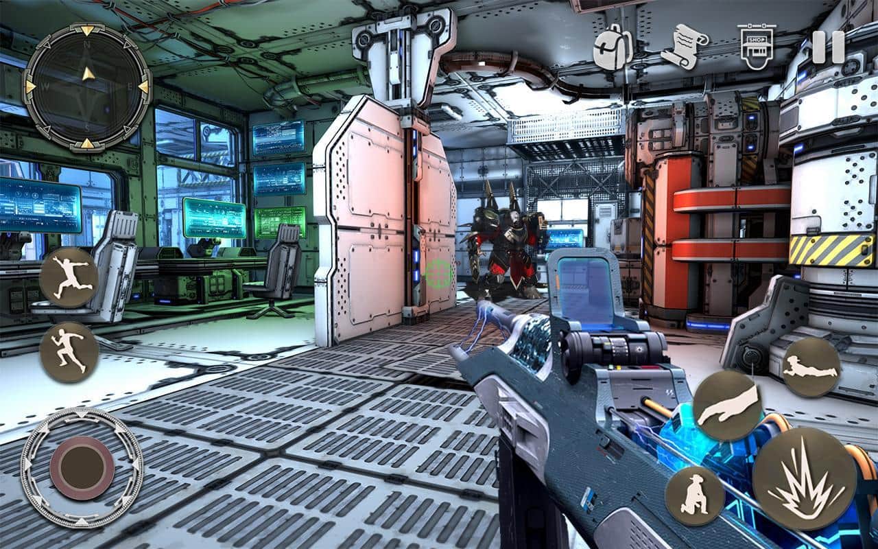 Ücretsiz Modern Robotlar Galaksi Savaşı: Savaş Alanı – Android'de savaş robotlarıyla mücadele edeceğiniz birinci şahıs nişancı. Bu oyunda, robotların ele geçirdiği bir uzay gemisinde yer alacaksınız ve temizleme yapmanız gerekecek. Güçlü bir silah alın ve mekanik düşmanlarla savaşarak geminin farklı bölümlerinde hareket edin. Benzersiz savaş becerilerinizi kullanın ve mümkün olduğunca fazla düşmanı yok etmek için savaş taktikleri geliştirin. 15'ten fazla heyecan verici görevi tamamlayın ve düşmanın zayıf noktalarını araştırın.