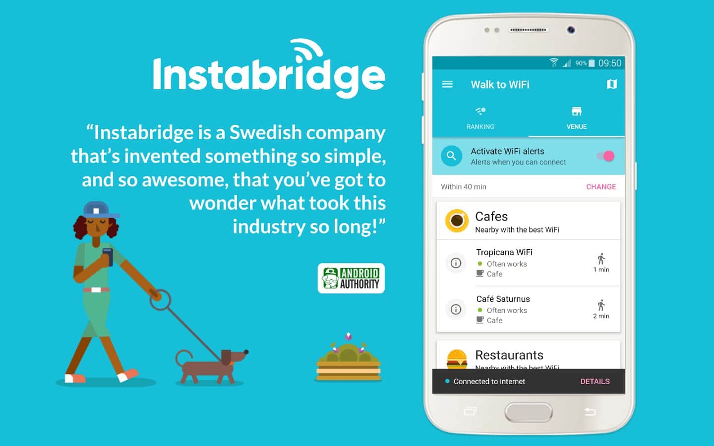 Instabridge'den Ücretsiz Wifi – Instabridge AB geliştiricileri tarafından oluşturulan ilginç bir program, amacının dünya genelinde binlerce Wifi noktasına ücretsiz internet erişimi sağlamaktır. Instabridge, çevrimiçi olarak tüm kamu Wifi ağlarının şifrelerini saklamanıza olanak tanıdığı için bulduğunuz tüm noktaları arkadaşlarınızla paylaşın.