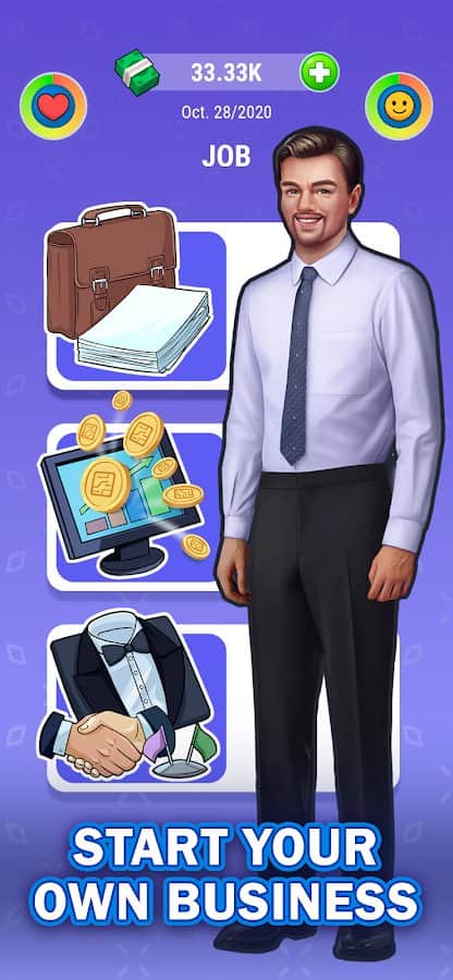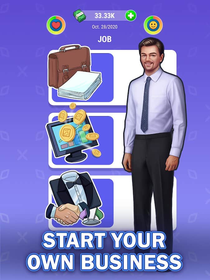 Aptaldan Havalı Ol - Gerçek Hayat Simülatörü: Zengin Ol - Sıfırdan zirveye ulaşmak çok zordur, hedefe ulaşmak için çok sayıda adım atmanız gerekir. Etrafınızdakilere, fikirlerinize ne kadar şüpheyle yaklaştıklarını kanıtlayın. Öncelikle herhangi bir iş bulun, ilerlemek için para biriktirmeye başlayın, ek gelir fırsatlarını deneyin, kumarda risk alın ve belki de büyük ikramiyeyi kazanın, yaşam yerinizi değiştirin, yeni bir hayata başlayın. Sizce, sona kadar gitmeye yetecek gücünüz var mı? Eğer varsa, mükemmel bir gelecek sağlamak ve daha sonra istediğiniz her şeyi satın almak için durmaksızın çalışın.