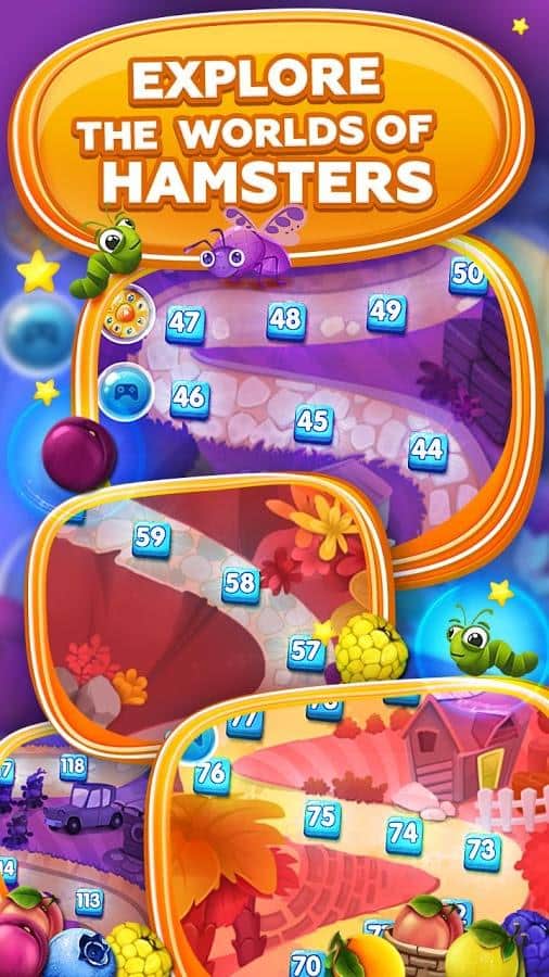 Meyve Hamsterleri - Hamsterler Çiftliği: 3 Eşleştir Oyunu – renkli bir android oyunu, burada eğlenceli bir çiftlikte yer alacaksınız. Bu çiftlikte çeşitli meyve ve sebzeler yetiştiriliyor ve sevimli hamsterciklerin hasadını toplaması gerekiyor. Göreviniz, onlara sepetlerine hasat toplamaları için üç veya daha fazla aynı meyveyi yan yana getirip patlatarak yardım etmek. Tam bir hasat sepeti toplayın ve seviyeleri daha hızlı geçmenize yardımcı olacak ekstra bonuslar ve iyileştirmeler kazanın. Maceranıza hemen başlayın ve canlı grafiklerin ve sayısız görevlerin tadını çıkarın. Aç hamsterciklere lezzetli meyve ve sebzelerle bakın. Arkadaşlarınızla oynayın ve inanılmaz sonuçlar elde edin.