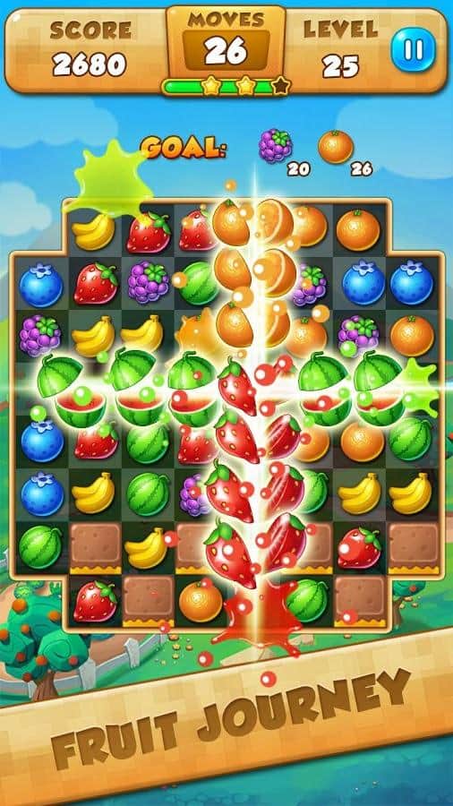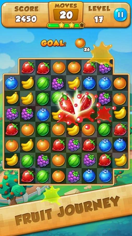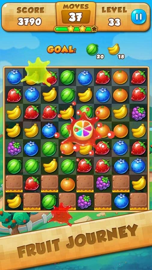 Meyve Yolculuğu – çeşitli dünyalarda sulu meyvelerle dolu heyecan verici bir yolculuğa çıkın. Oyundaki ana amacınız üç veya daha fazla meyveyi yan yana getirmek, onları yer değiştirerek sıraya dizmek ve alandan kaldırmaktır. Mümkün olan en fazla puanı ve bonusu elde etmek için üçten fazla meyveyi bir araya getirin ve kombinasyon vuruşları yapın. Her yeni seviye, size alışılmadık alan konfigürasyonları ve üzerindeki çok sayıda meyve ile ilginç zorluklar sunacak. Bu oyunda sayısız seviyeyi mümkün olan en kısa sürede veya en az hamleyle geçmeye çalışın. Oyunda size yardımcı olacak inanılmaz bonuslar kazanır ve oyunun ilginç ve eğlenceli sürecinin tadını çıkarın.