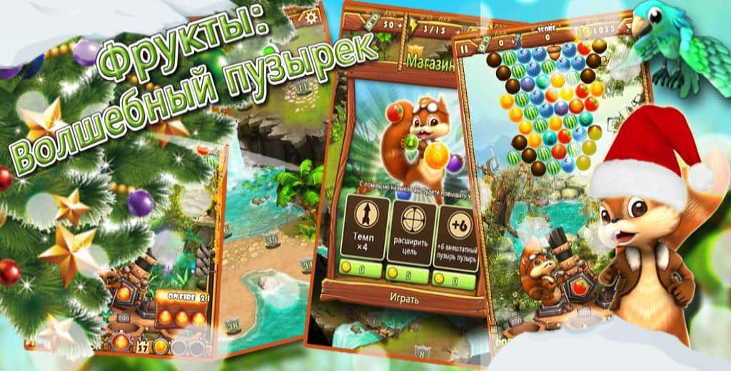 Meyveler 2: Büyülü Baloncuk - ana karakteri sincap olan eğlenceli bir üçlü eşleştirme oyunu. Bizim sincabımız fındık ve meyveleri çok seviyor ama onlar ağaçların çok yükseklerinde ve fındıkları vurmak için harika bir yol buldu. Sincaba mümkün olduğunca çok meyve ve fındık toplamasında yardım edin. Renk olarak üçten fazla aynı meyvenin bulunduğu yere nişan alın ve ateş edin, meyveler düşecek ve siz puan kazanacaksınız. Bu oyunla çeşitli seviyelerde seyahat edin ve mümkün olduğunca çok puan toplayın.