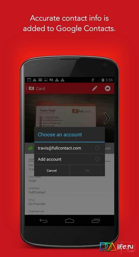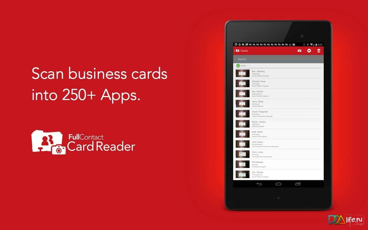 FullContact Kart Okuyucu – FullContact geliştiricilerinden Android cihazlar için ilginç bir uygulama olup, bir kartvizit tarayıcısıdır. Kart üzerindeki verileri istenen formatta iletişim bilgilerine dönüştürme yeteneğine sahiptir! İndirin, deneyin ve yorum bırakmayı unutmayın.
