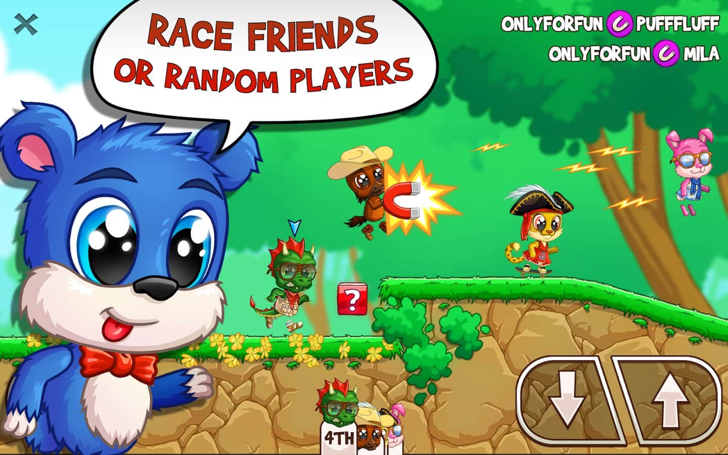 Eğlenceli Koşu Arenası Çoklu Oyuncu Yarışı - Android için çılgın yarışların üçüncü bölümü, birçok ve çeşitli seviyeleri ile. Bu oyunda sekiz rakip ile birlikte seviyelerde koşacak ve bitişe ilk ulaşarak tüm ödülleri kazanmak için çaba göstereceksiniz. Rakiplerinizi geçerek ileriye koşun ve birçok engel ve tuzaktan kaçının. Yolculuğunuz boyunca çeşitli bonusları toplayın ve bunları eylemde kullanarak inanılmaz sıçramalar ve numaralar yapın, duvarlara tırmanın ve sizi takip eden rakiplerinizin saldırılarından kaçının. Liderlik tablosunun en üstüne çıkın ve bu oyundaki rekorunuzu belirleyin.