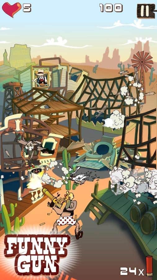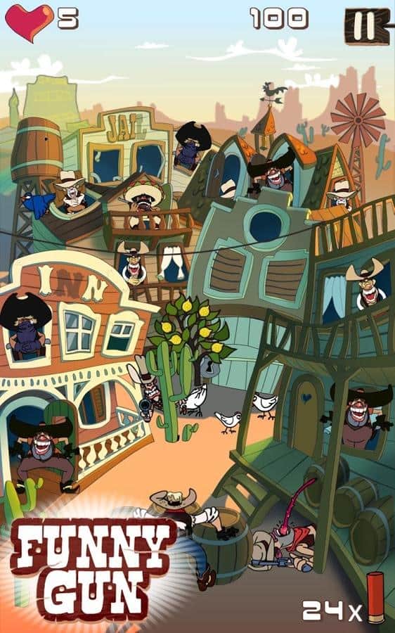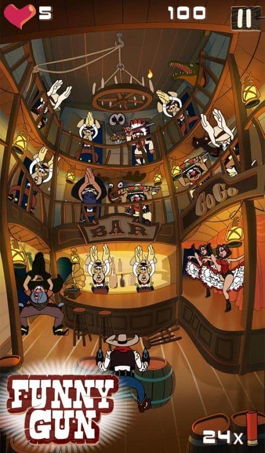Komik Silah - oyunun geçtiği eğlenceli bir atış poligonu, Vahşi Batı'da. İki çetenin arasında heyecan verici çatışmalara katılın ve çeşitli silahlar kullanarak düşmanlarınızı vurun, ama dikkatli olun, çatışma yerlerinde sivil insanlar da olabilir. Sizleri barlardan çöl bölgelerine kadar çeşitli yerler bekliyor ve ne kadar çok mizah ve eğlence var.