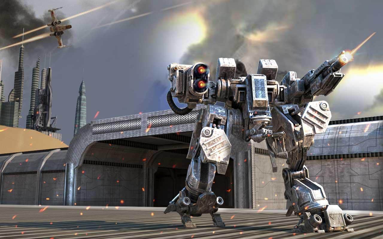 GELECEKTEKİ SAVAŞ ROBOTLARI – sizi yakın bir geleceğe götüren bir Android oyunu, burada dünyayı savaş robotları yönetiyor. Robotlardan birini kontrol altına alın ve düşmanı yok etme görevlerini yerine getirin. Robotunuzu sadece ileriye doğru yönlendirin ve düşmanın saldırılarından kaçınarak inanılmaz numaralar ve manevralar yapın. Düşmanlara sürekli ateş açın ve bu amaçla güçlü roket rampaları, otomatik toplar ve diğer silahları kullanın. Her yok ettiğiniz düşman robotu için yeterli puanı toplayın ve sizi teknik özellikleri ve yeni silahlarıyla memnun edecek yeni robotlar satın alın.