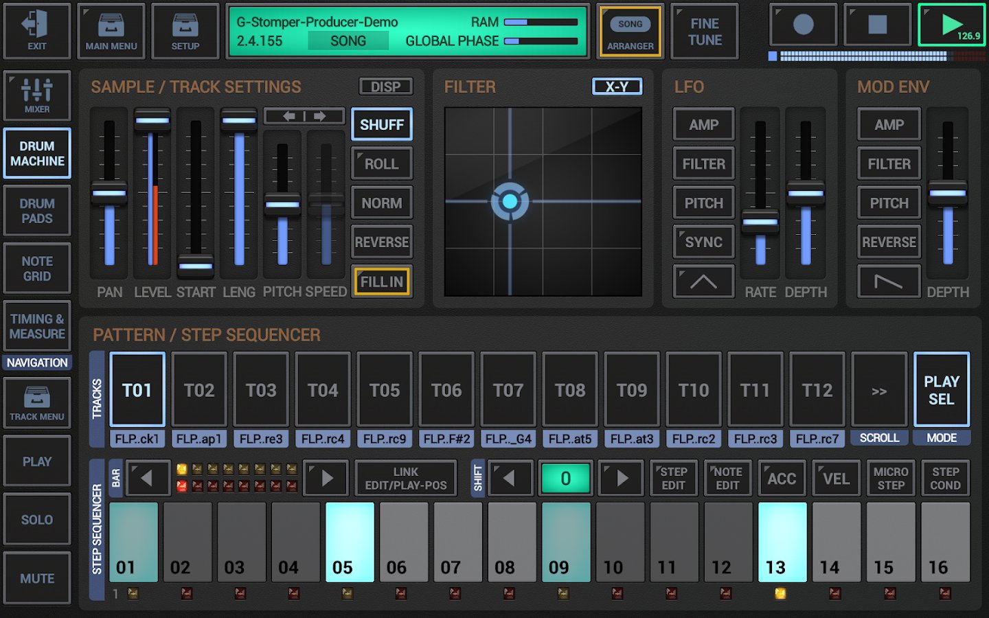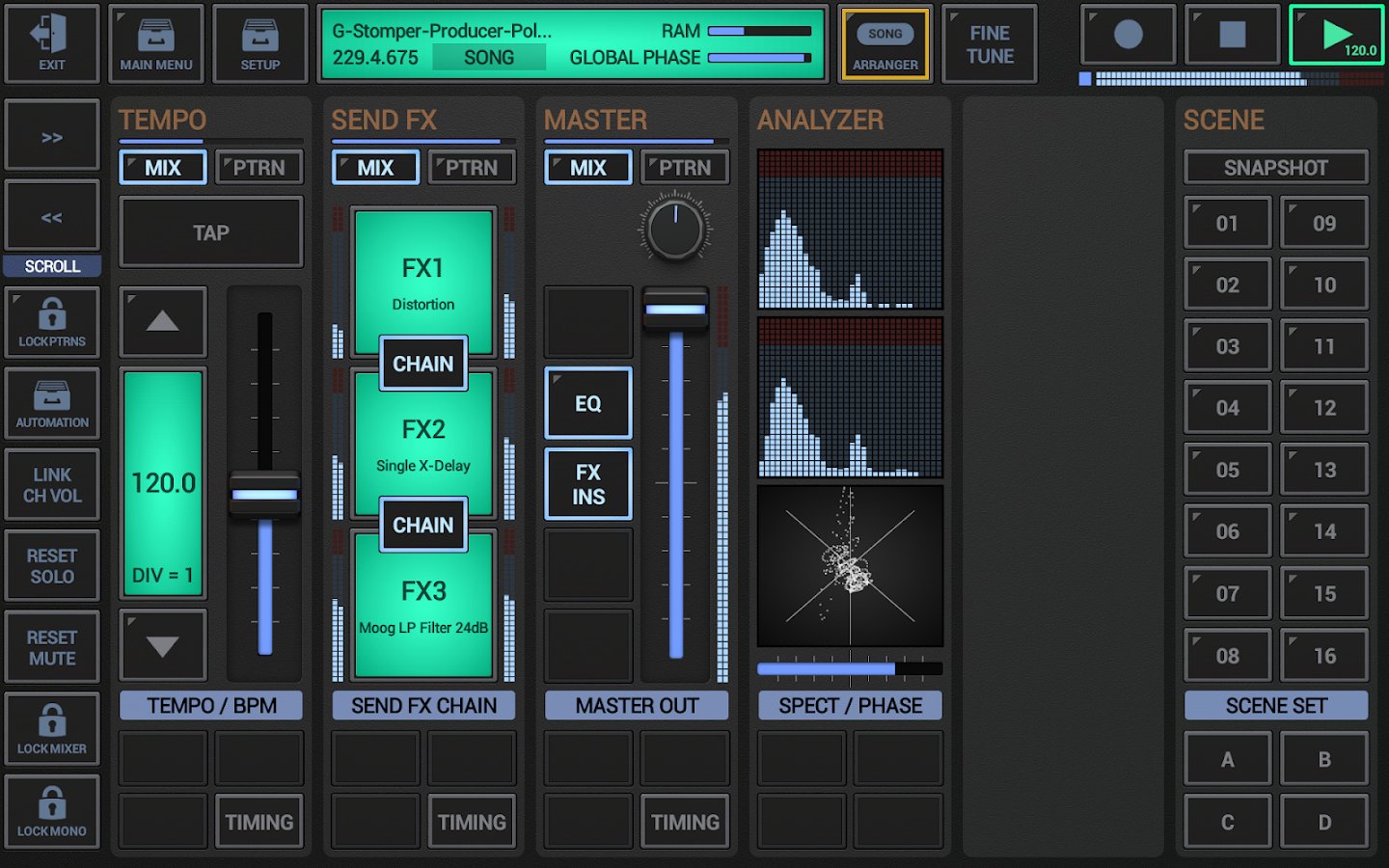 G-Stomper Producer — güçlü bir mobil dijital ses istasyonu olup, sequencer'ın esnekliğini ve stüdyonun işlevselliğini bir araya getirir. Uygulama, 24 kanallı bir davul makinesi, VA-Beast adında polifonik bir sentezleyici, efektlerle donatılmış 36 kanallı bir mikser ve grafik çok kanallı bir aranjör sunmaktadır. Eşsiz bir özellik olarak, her kanal için bağımsız kuantizasyon ve boyut ayarı yapabilme imkanı, karmaşık poliritimlerin oluşturulmasına olanak tanır. Ableton Link, MIDI desteği, WAV ve MIDI exportu ile gerçek zamanlı kayıt gibi özellikler, onu canlı performanslar ve stüdyo çalışmaları için mükemmel bir araç haline getirir.