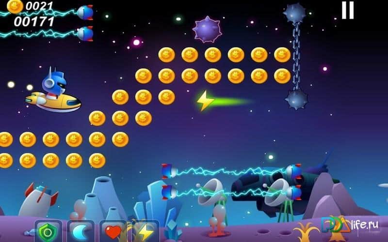Galaksi Macerası – Android için uzaylıarcade oyunu, çok zor görevlerle. Bu oyunda, kendi uzay gemisiyle yeni keşfedilmemiş gezegenlerde uçan bir uzaylıyı kontrol etmeniz gerekecek. Çeşitli engelleri aşarak yolunuzu açın ve paraları toplayarak bunlarla hızlandırıcılar satın alın, böylece oyunu daha ilginç ve çekici hale getirin. Karşıınıza çıkan görevleri yerine getirin ve üzerinize gelen roketler veya elektrik alanlarından kaçarken tehlikeli manevralar yapın. Ekstra bonuslar alın, manyetik alan ve değerli yaşamlar gibi.