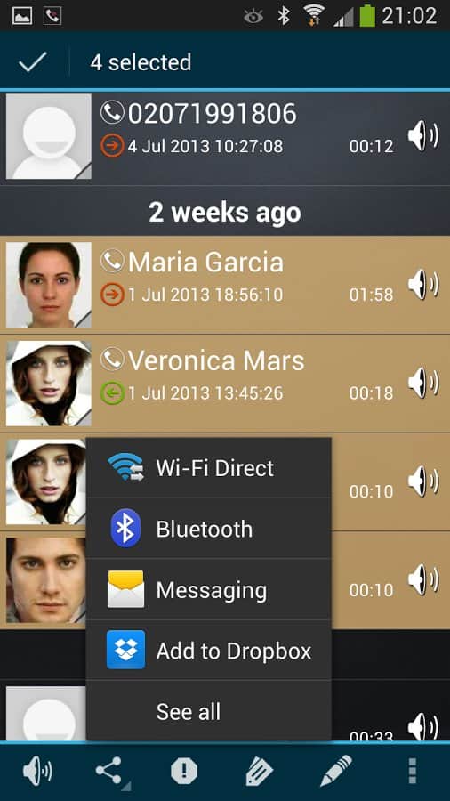 Galaksi Arama Kaydedici, Android için telefon görüşmelerini kaydetmek için mükemmel bir programdır. Artık gözden kaçıracağınız veya gerekli bilgiyi unutacağınız konusunda endişelenmenize gerek yok. Galaksi Arama Kaydedici'nin en büyük avantajı, herhangi bir kullanıcının başa çıkabileceği kullanım kolaylığıdır. Ses kaydı kalitesi mükemmeldir. Ancak, iki yönlü kaydın yalnızca Samsung Galaxy S II ve Samsung Galaxy S III gibi cihazlarda çalışacağını belirtmek gerekir.