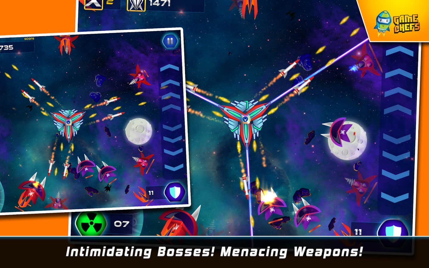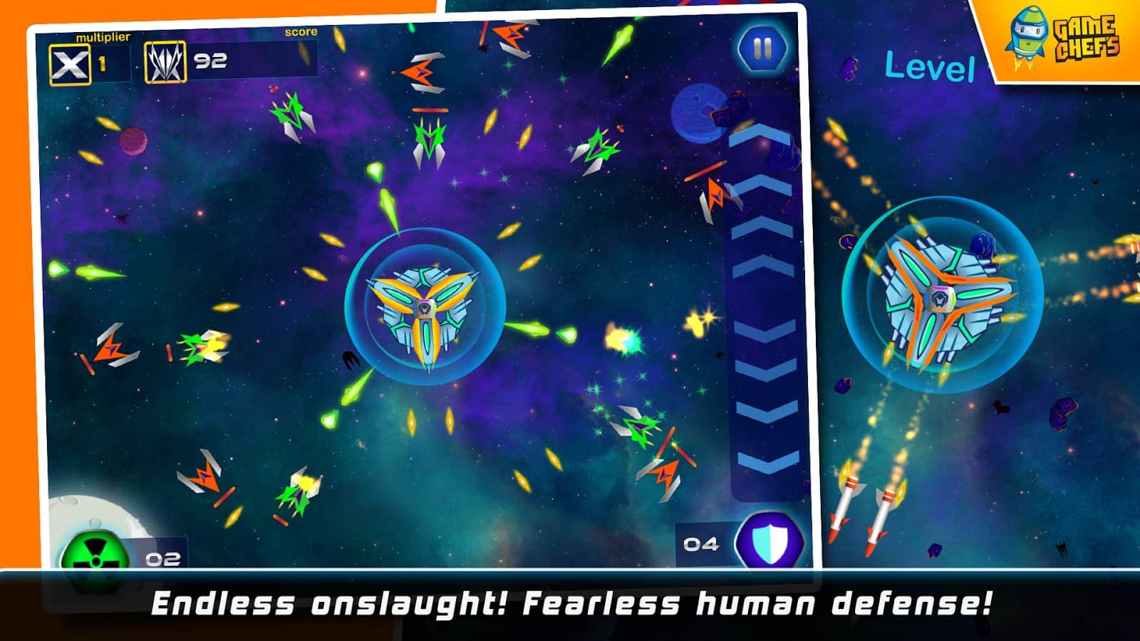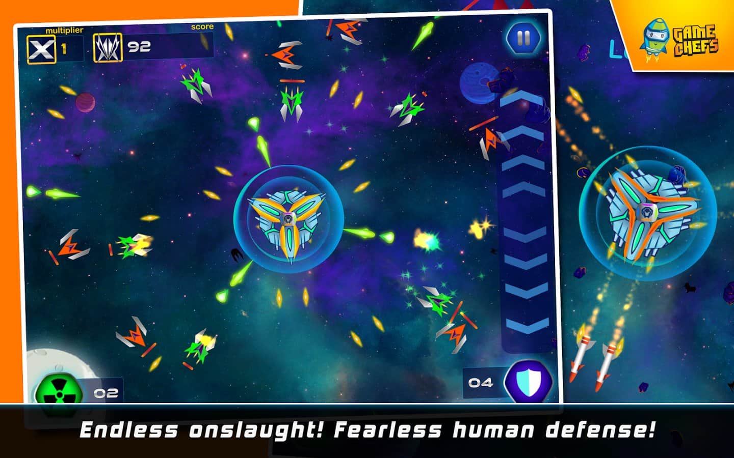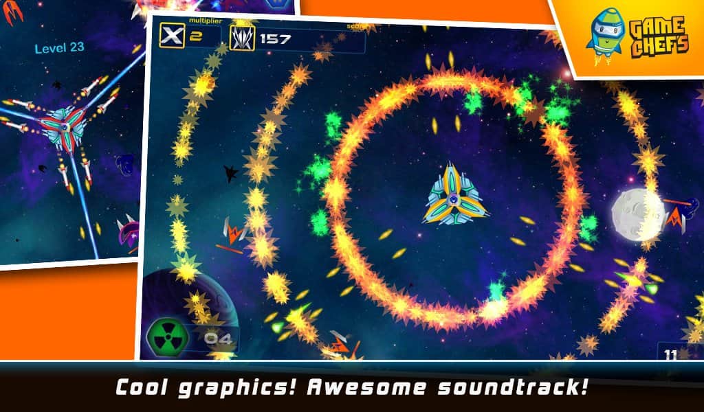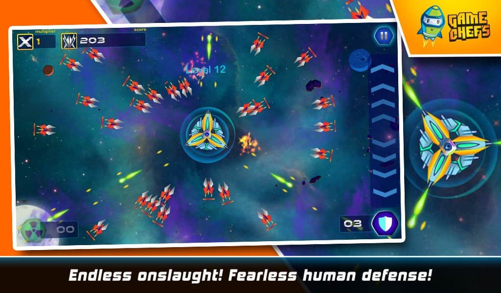 Galaxy Defense Force HD - Android için harika bir uzay nişancı oyunu, ruhunuzu ele geçirecek ve sizi alıştığınız tüm işlerden uzaklaştıracak. Galaktik savunma güçlerini kontrol altına alın. Göreve başlamadan önce, hangi ölümcül uzay gemisini seçeceğinizi belirleyeceksiniz. Üç veya dört böyle gemi bir araya gelerek tek bir bütün üs oluşturur. Göreviniz, bunu çeşitli silahlar kullanarak korumaktır.