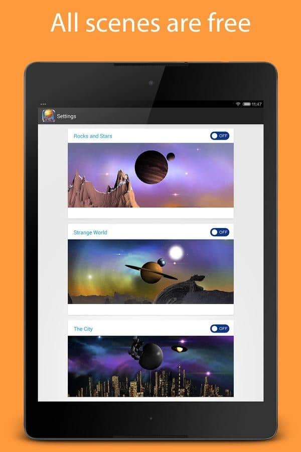 Galaxy Legends Canlı Duvar Kağıdı – her çözünürlükteki Android telefonlar ve tabletler için fantastik canlı duvar kağıtları. Bu canlı duvar kağıtları sayesinde inanılmaz bir uzay ortamına dalacak ve kendinize bir galaksi keşfedeceksiniz. Beğendiğiniz manzarayı seçin ve yıldızların ve gezegenlerin parıltılı efektlerinin tadını çıkarın. Tüm galaksiyi gezinin ve kuyruklu yıldızların, asteroitlerin, yıldızların, uzay gemilerinin ve gezegenlerin hareketini izleyin. Bu canlı duvar kağıtlarını hemen kurun ve geniş ayar seçenekleri, düşük pil tüketimi ve harika grafiklerle sizi memnun etsin.