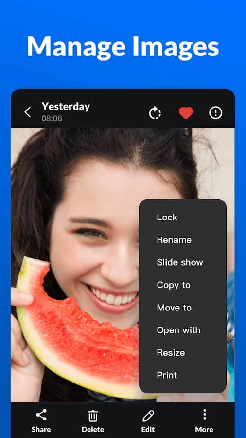 Galeri - Galerinin içinde sadece fotoğraflar veya videolar şeklinde güzel anıları toplamakla kalmaz, aynı zamanda bunları düzenleyebilir, bir slayt gösterisi oluşturabilir, benzer fotoğrafları tek bir dokunuşla temizleyebilir veya gereksiz ekran görüntülerini silebilirsiniz. Uygulama, yükleme tarihi, boyut, isim gibi birçok parametreye göre kolay sıralama desteği sunar. Sıralamanın nasıl yapılacağını kendiniz seçersiniz; küçükten büyüğe veya tam tersine. Eğer birkaç kişisel görüntüyü gizlemek istiyorsanız, ayrı bir klasör oluşturun, oraya taşıyın ve ardından güvenilir bir şifre belirleyin.