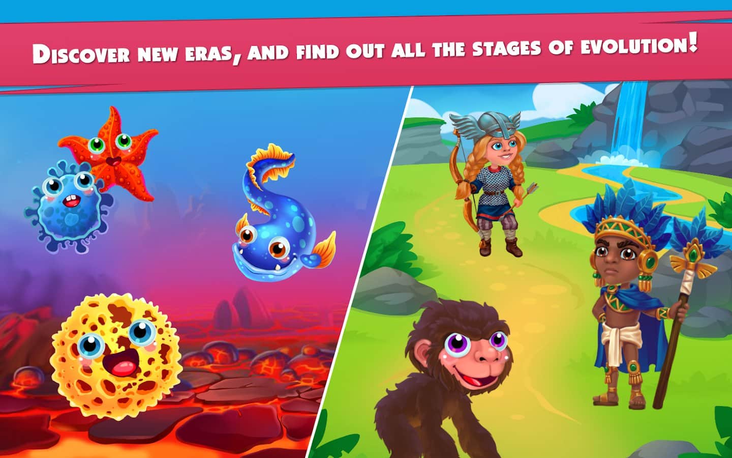 Evrim Oyunu: Tıklayın ve Birleştirin – çeşitli türlerin evrimini gözlemleyeceğiniz Android için sürükleyici bir oyundur. Bu oyunda göreviniz, aynı mikroorganizmaları birleştirmek ve Dünya'yı yerleştirecek daha karmaşık canlılar elde etmektir. Türlerin evrimini gözlemleyin ve bu arada madeni paralar kazanın, yükseltmeler elde edin. Telefonunuzun veya tabletinizin ekranına dokunun ve bakterilerin ve diğer mikroorganizmaların balıklara, hayvanlara ve hatta insanlara dönüşümünü izleyin. Çeşitli türlerin evrimini gözlemleyin ve evrim ağacında daha da yükseğe çıkın. Tüm dünya sakinlerini evrim döneminden geçirin.